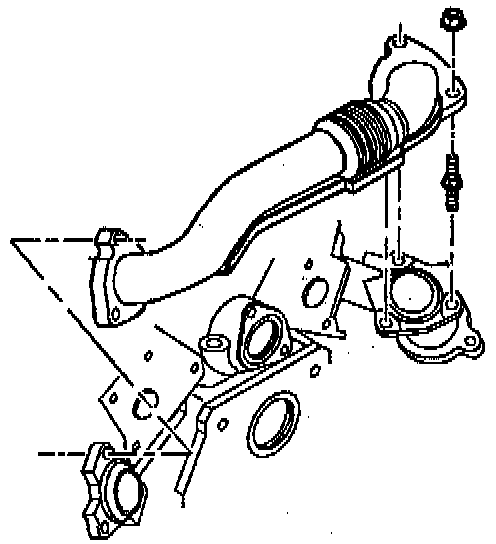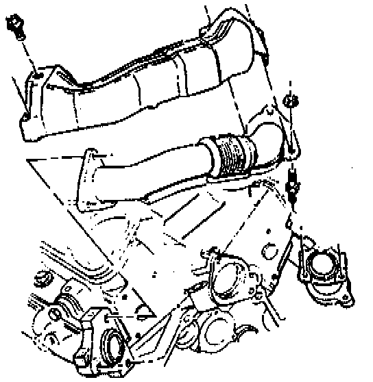 i. Install the crossover pipe to the exhaust manifolds.