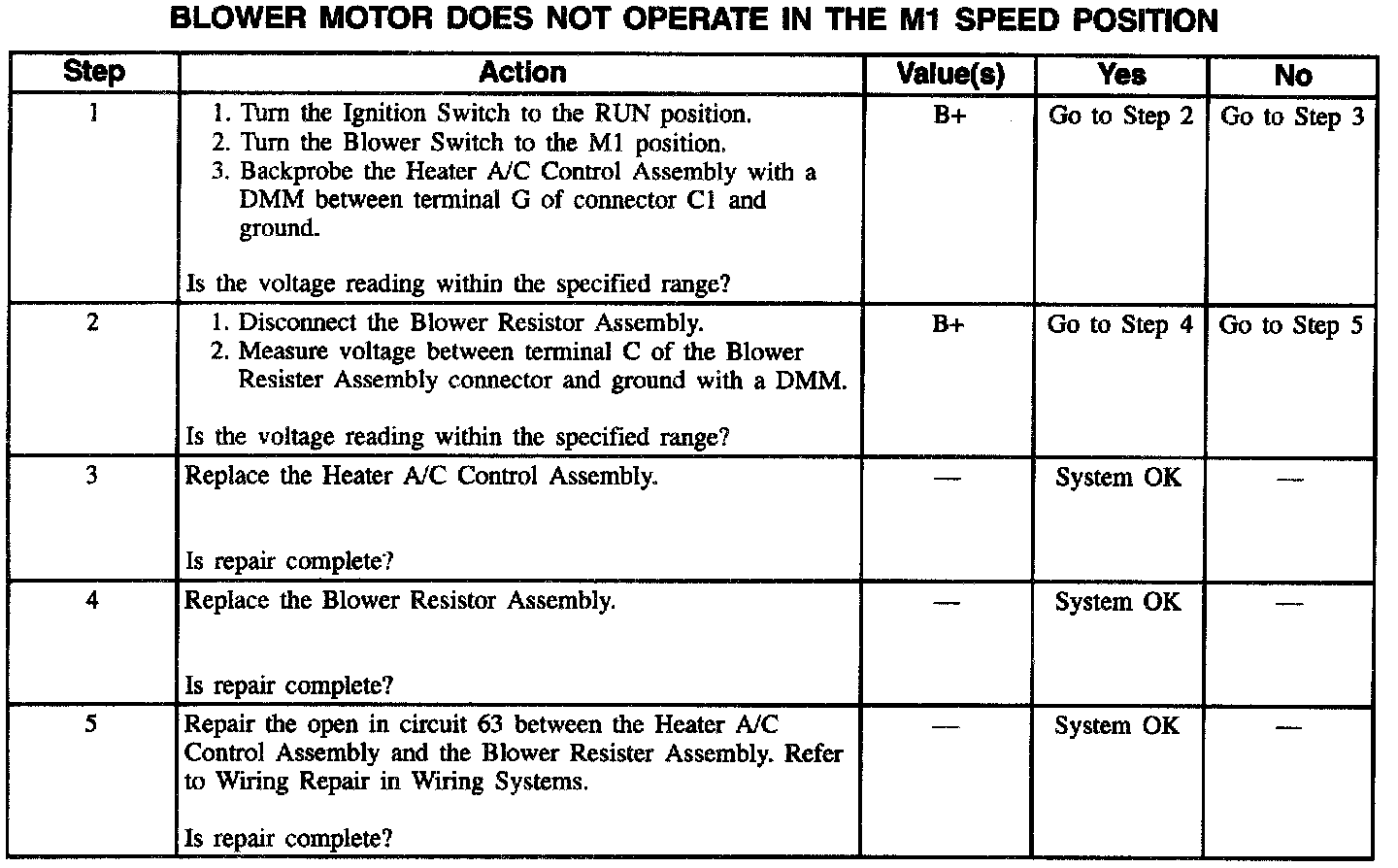 Blower Motor Does Not Operate In The M1 Speed Position: