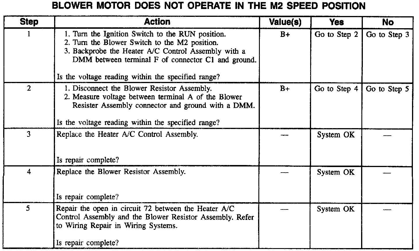Blower Motor Does Not Operate In The M2 Speed Position: