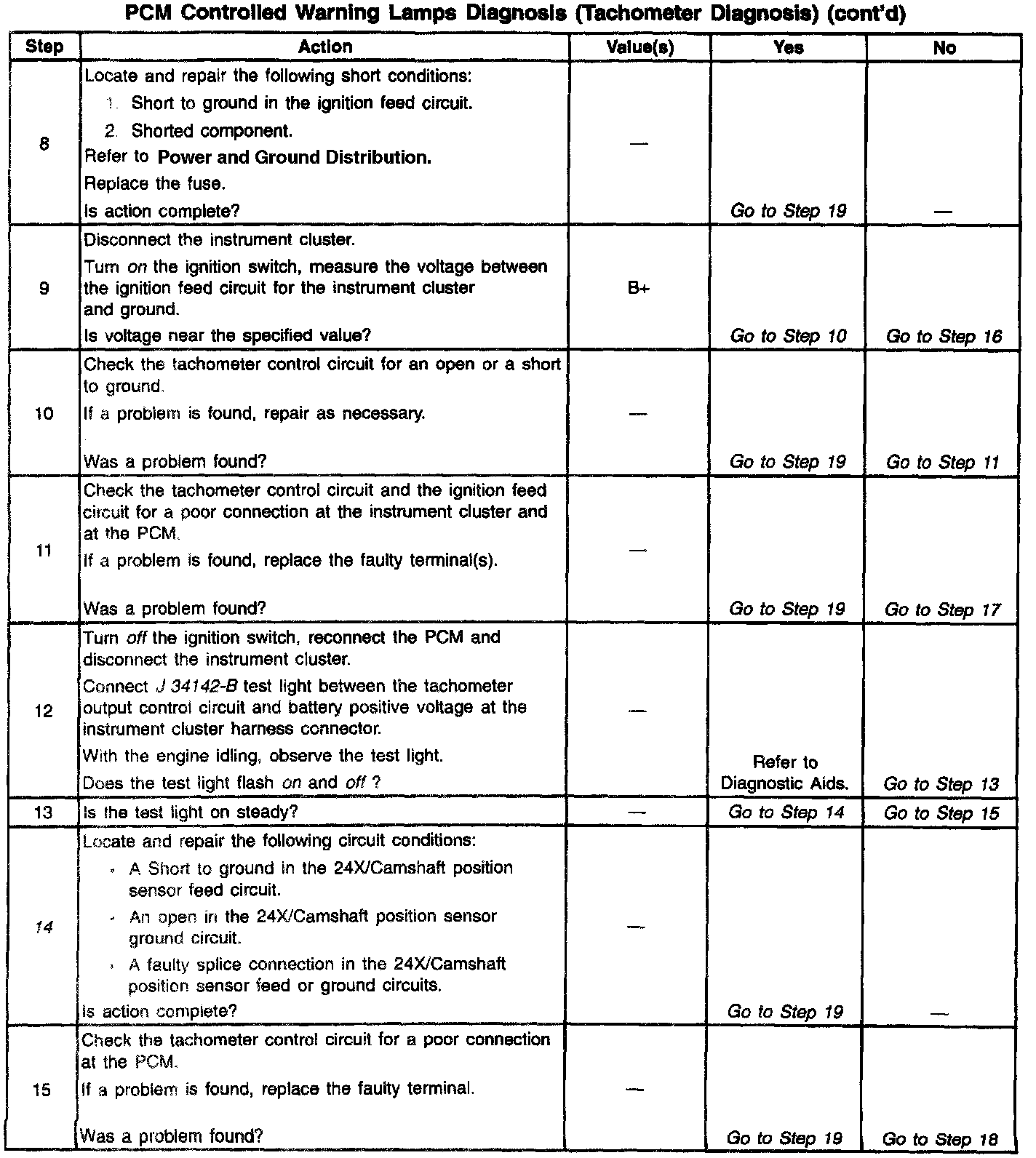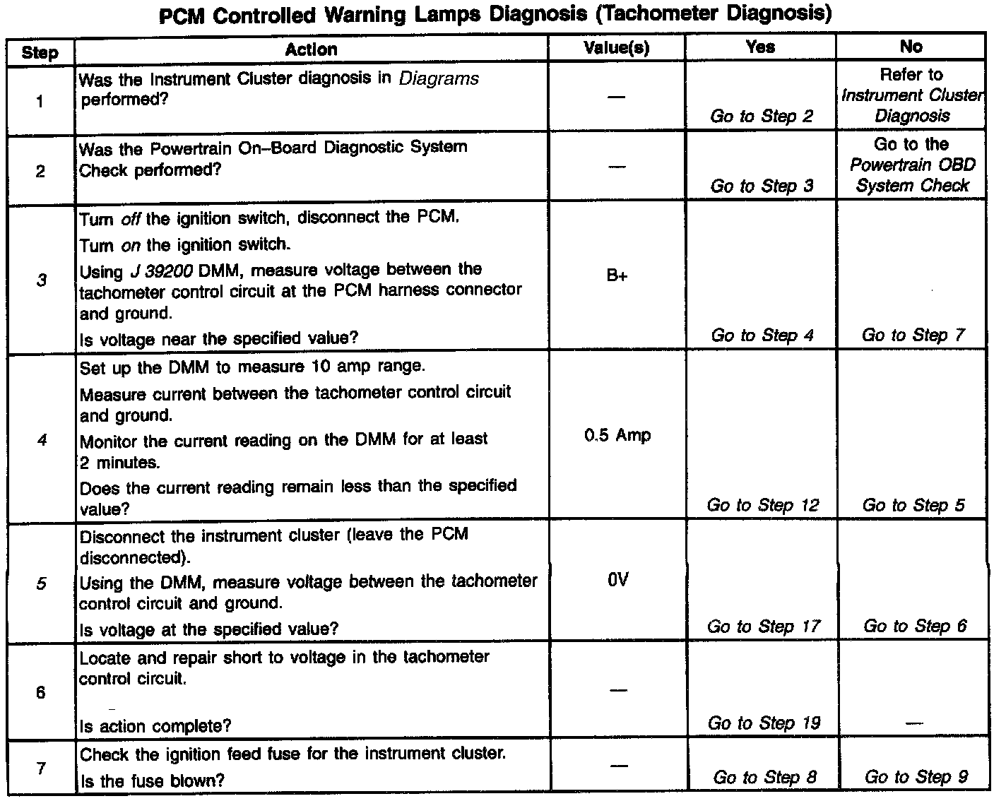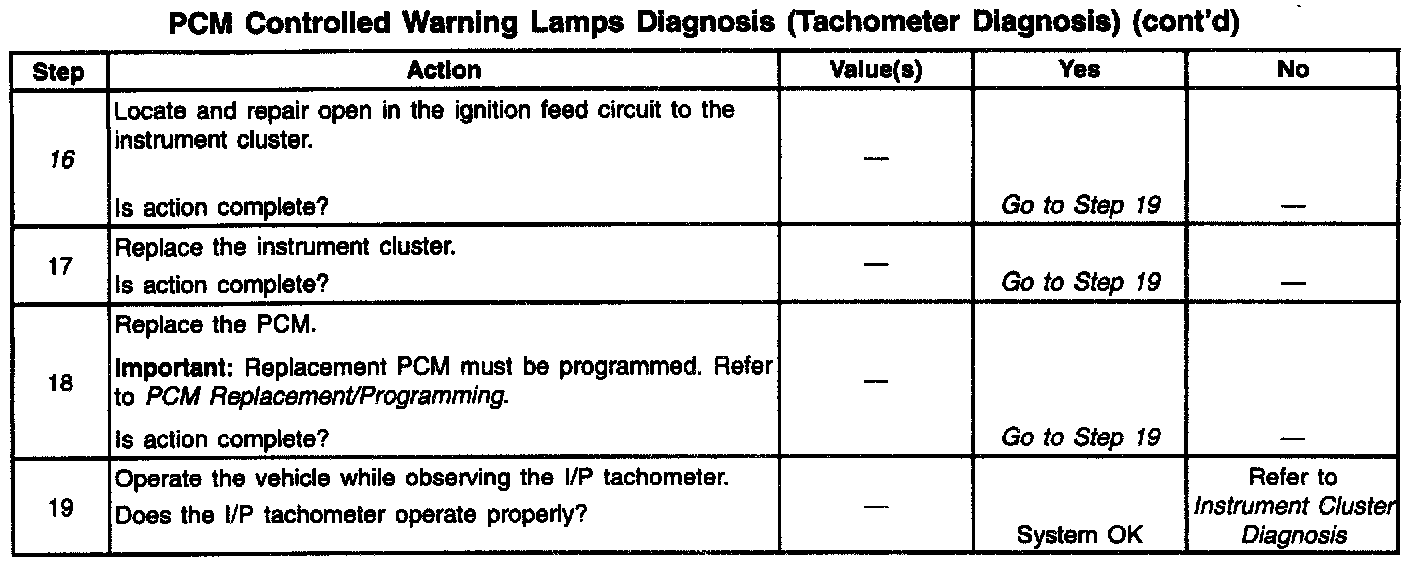 PCM Controlled Warning Lamps Diagnosis - Tachometer