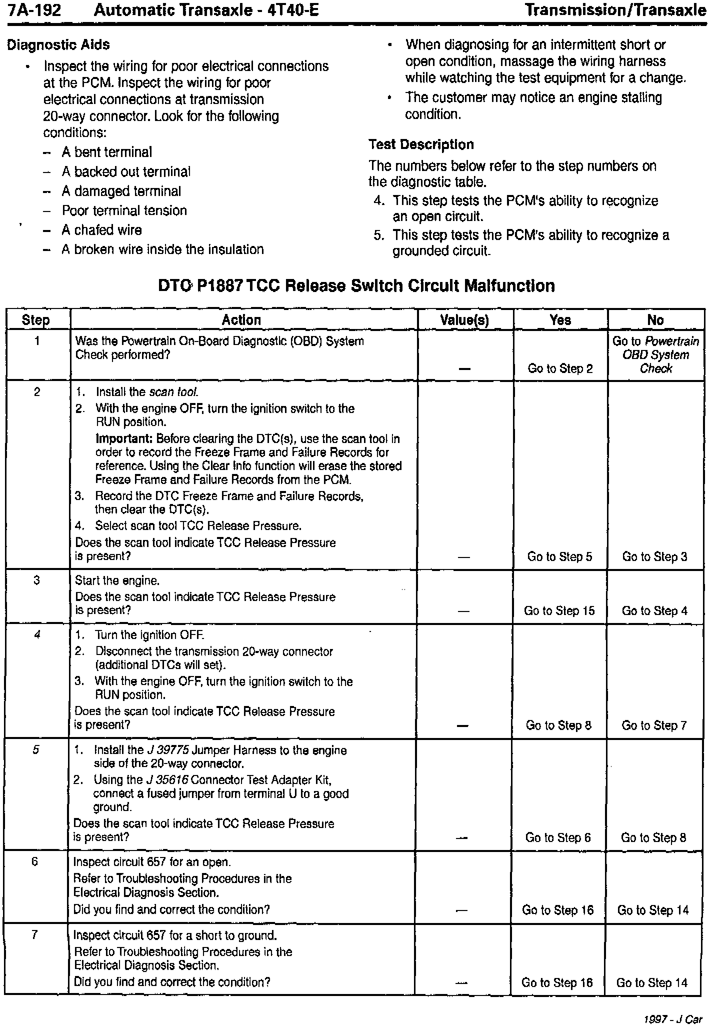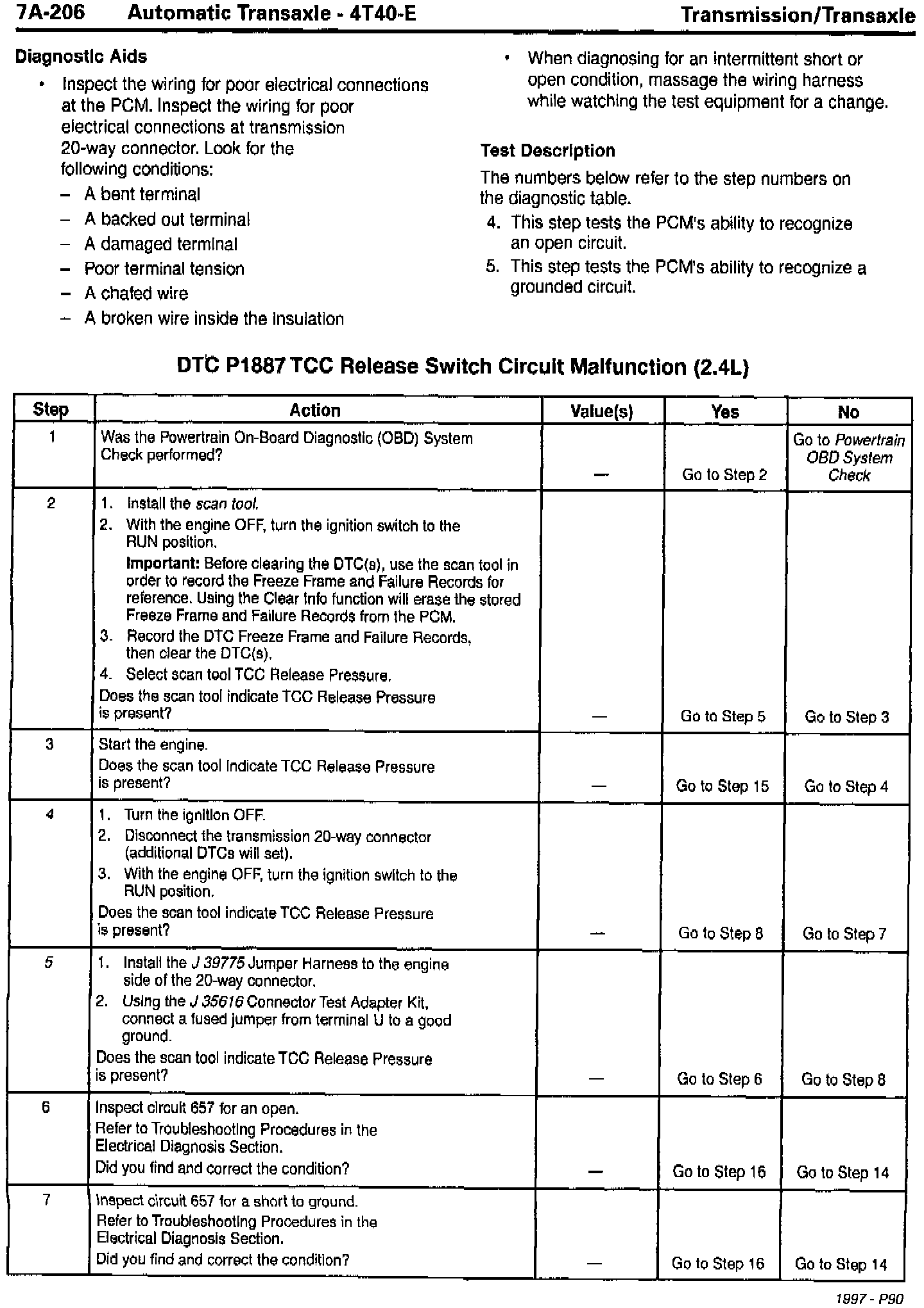 Section 7A-Automatic Transmission/Transaxle - DTC P0742/TCC Stuck On and DTC P1887/TCC Release Switch Circuit Malfunction