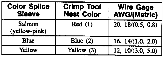 ^ Use the crimp and sealed splice sleeves on all types of insulation except tefzel and coaxial.