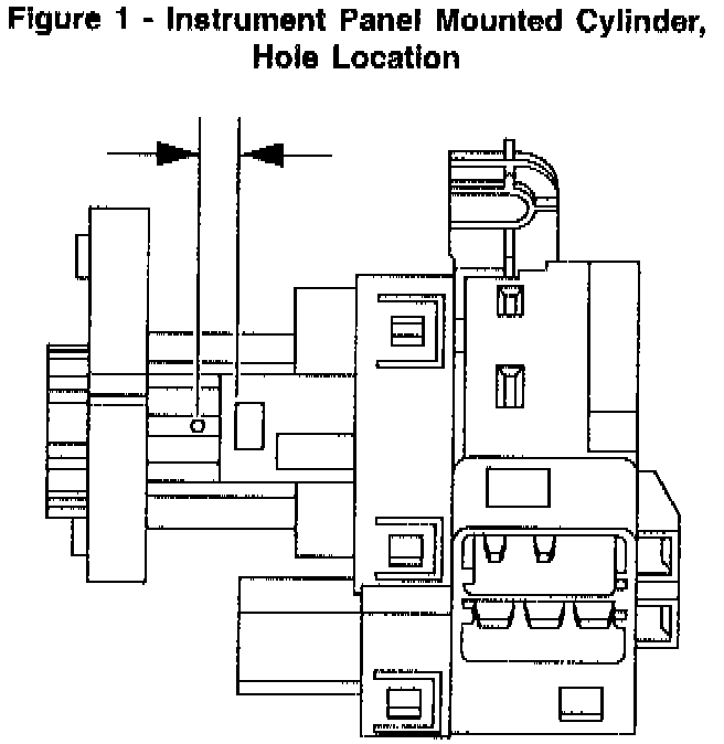a. Locate the surface for the cylinder release button on the plastic ignition switch housing and center punch a location on the "rib" approximately 3/8" rearward (toward the key entry end) from the cylinder release button, see Figure 1.