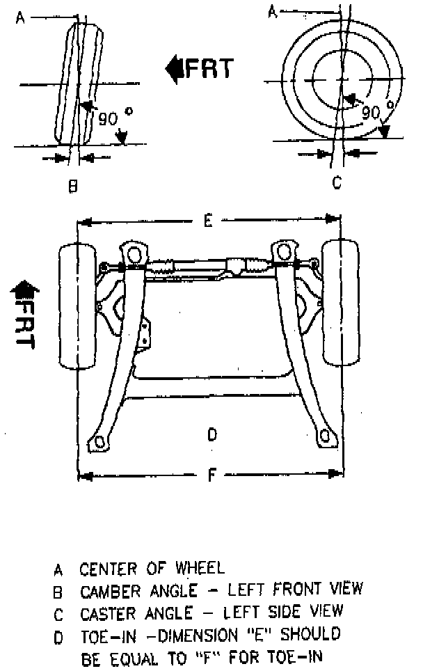 Toe also serves to offset the small deflections of the wheel support system which occurs when the vehicle is rolling forward. In other words, even when the wheels are set to toe in or out slightly when the vehicle is standing still, they tend to roll parallel on the road when the vehicle is moving. Toe affects tire wear.