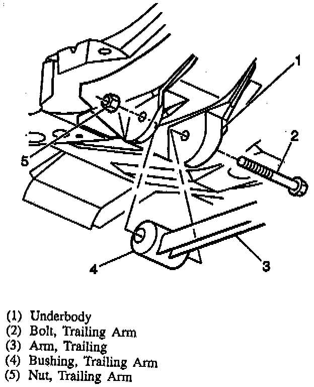 3. Trailing arm to body bolt.