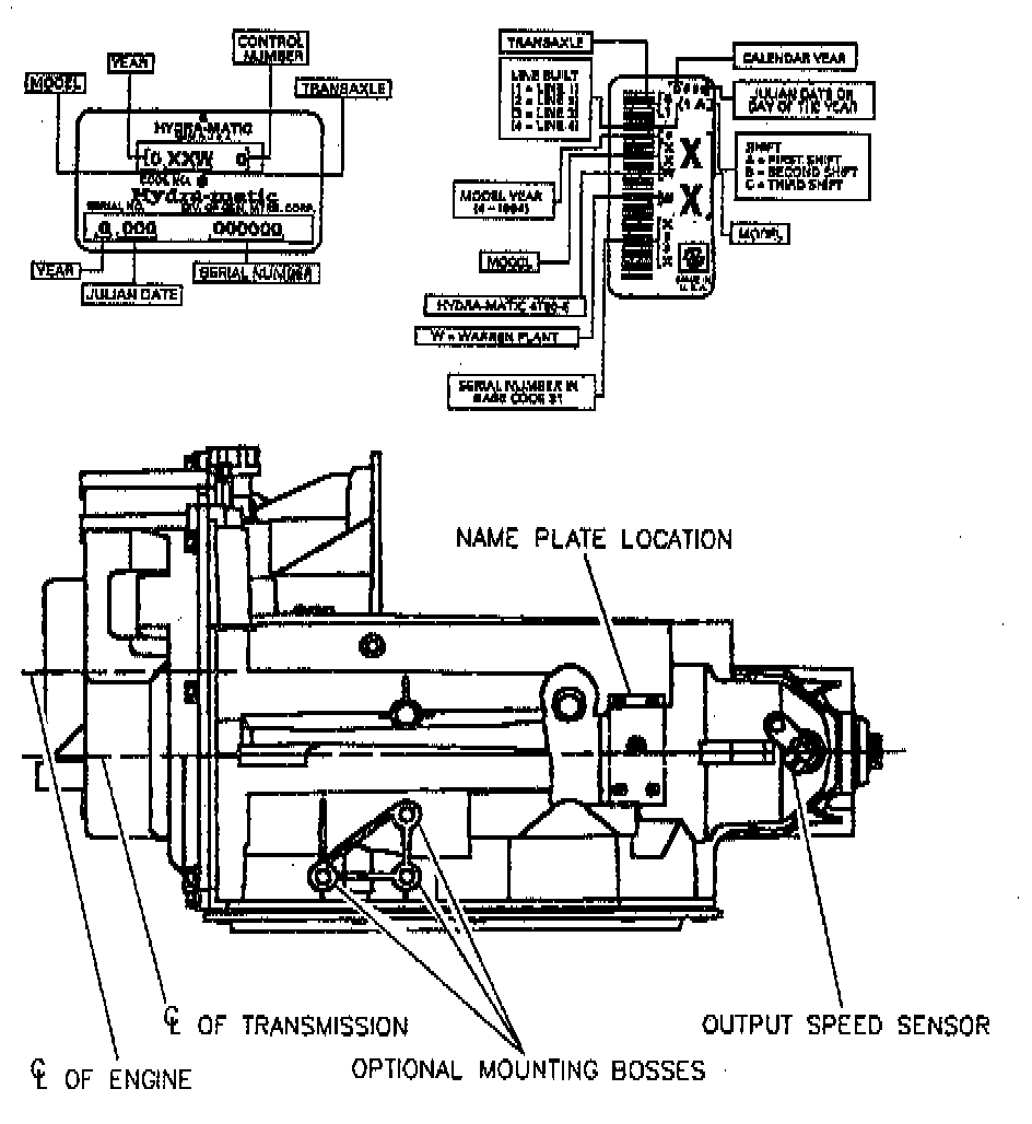 All automatic transaxles have a metal identification nameplate attached to the case exterior. The information on the nameplate will assist in the servicing and determination of replacement parts when ordered through the manufacturer's parts catalog.