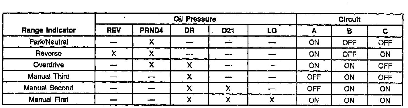 Oil Pressure and Circuit Combination Chart