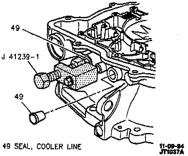 3. Seal removal tool J 41239-2 into cooler line seal.