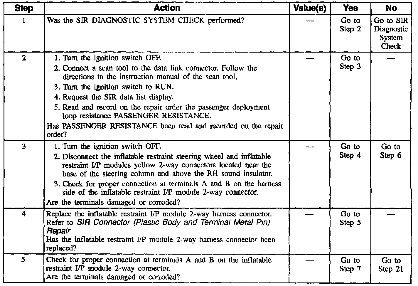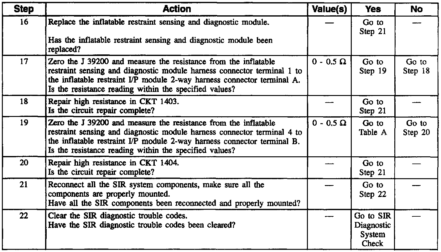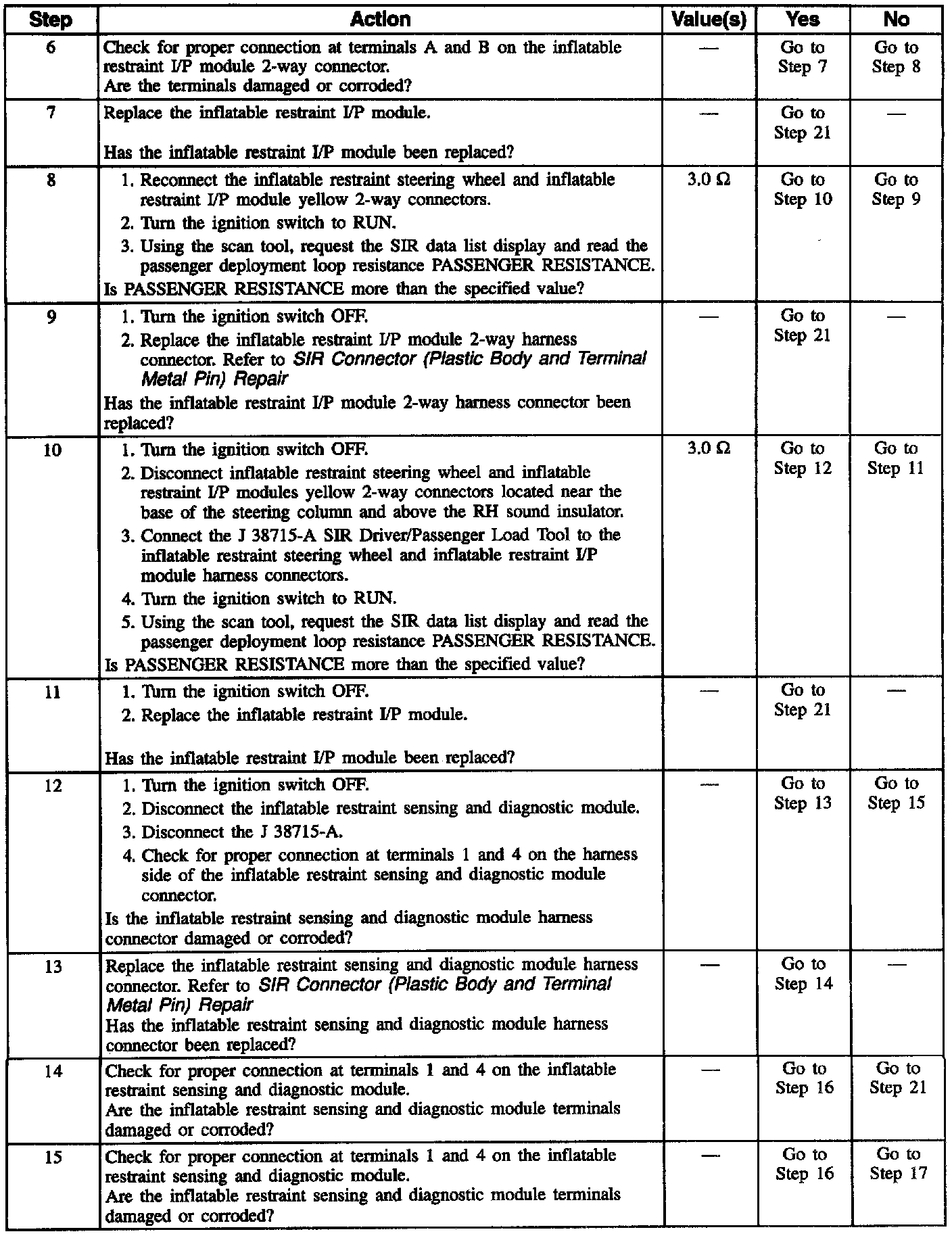 12. This test checks for proper contact and/or corrosion of the inflatable restraint sensing and diagnostic module connector.