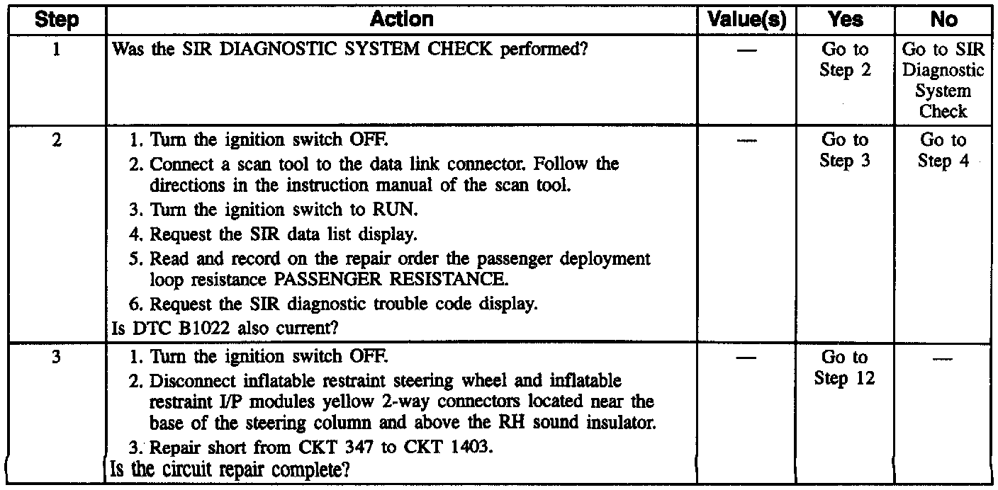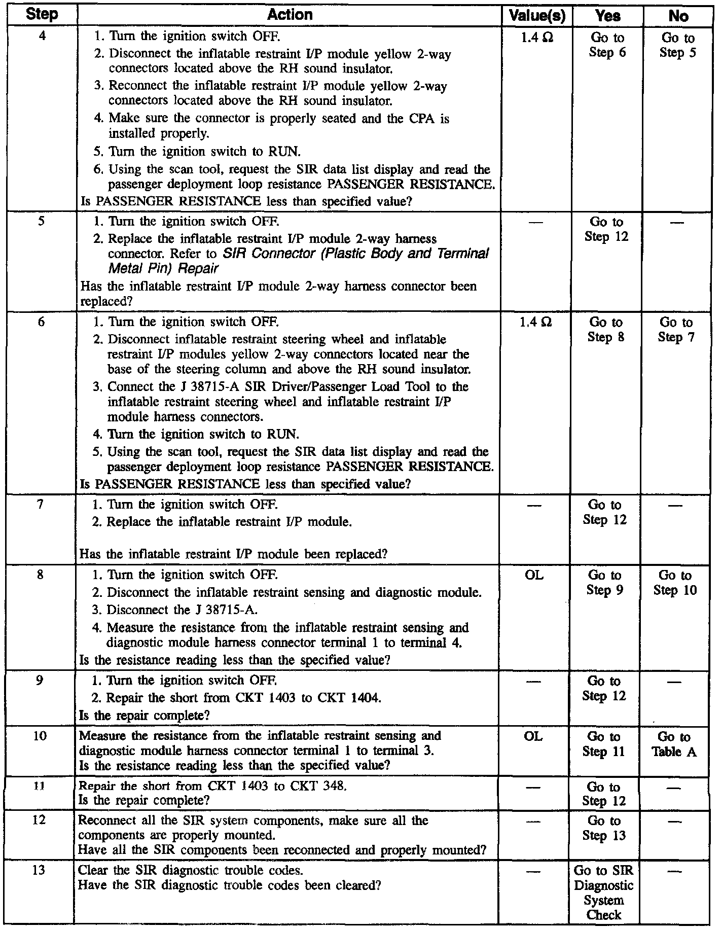 The resistance of the passenger deployment loop is more than 1.4° and the ignition switch is cycled.