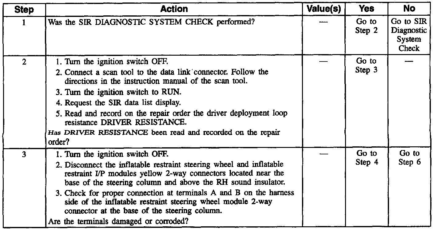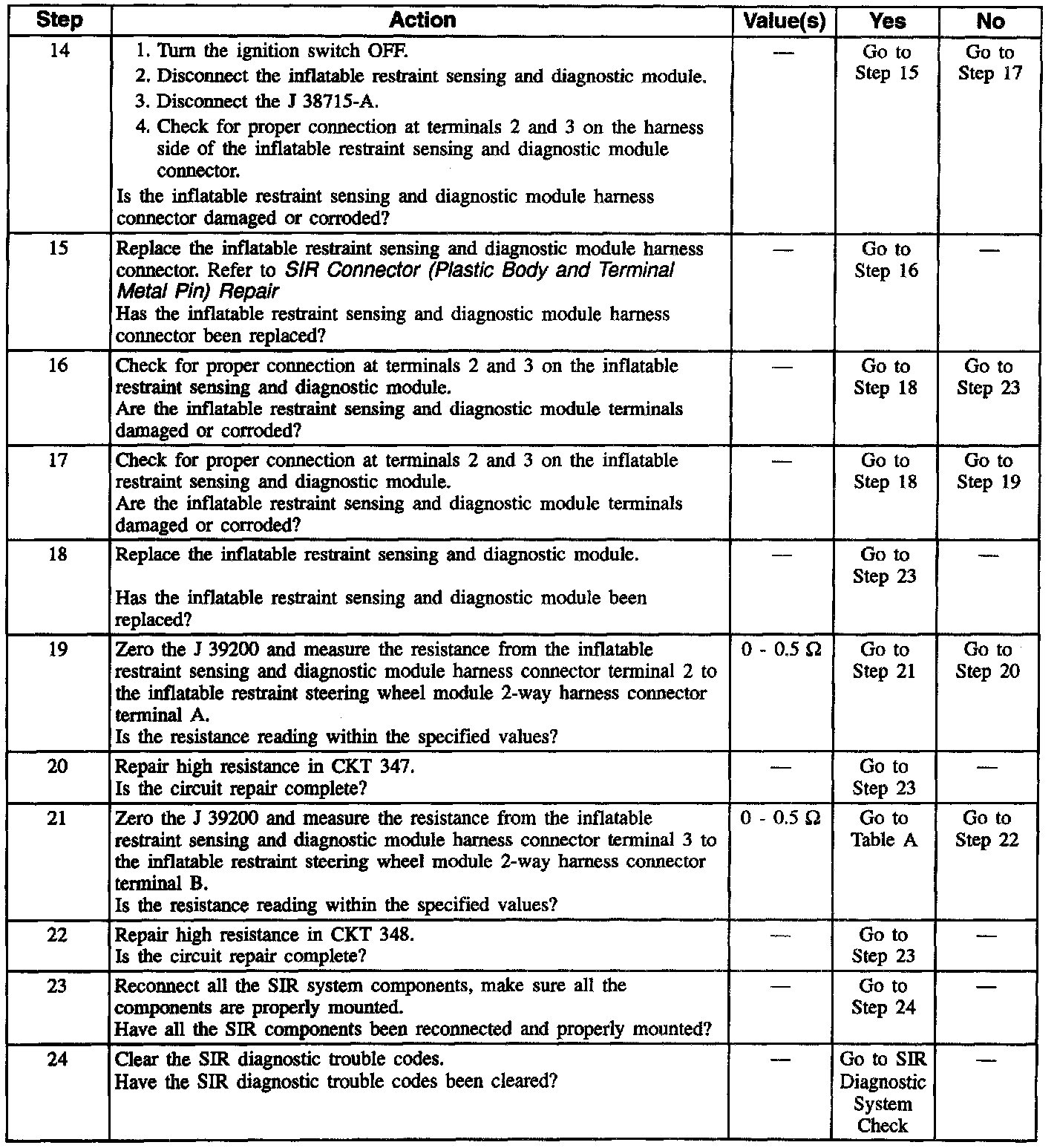 14. This test checks for proper contact and/or corrosion of the inflatable restraint sensing and diagnostic module connector.
