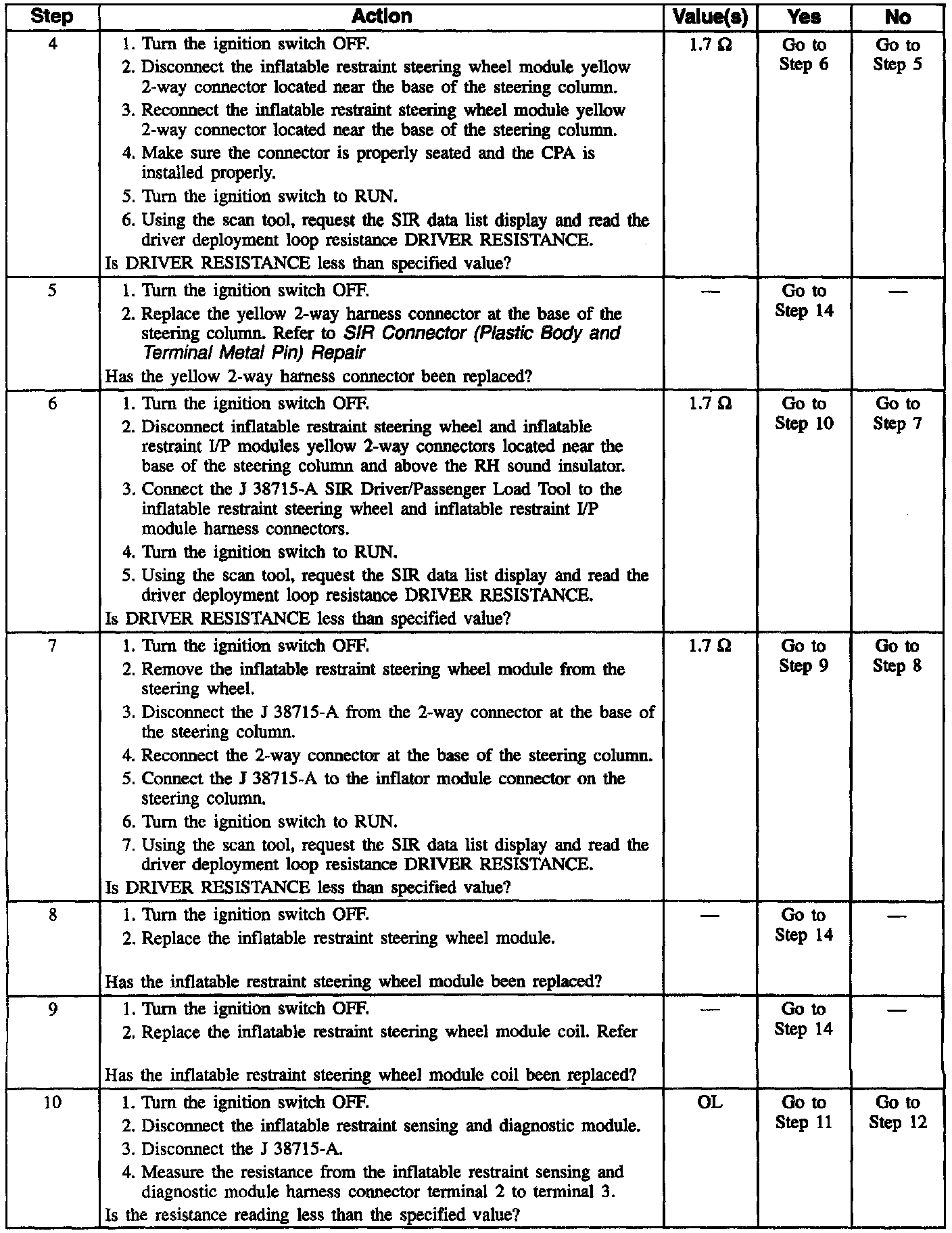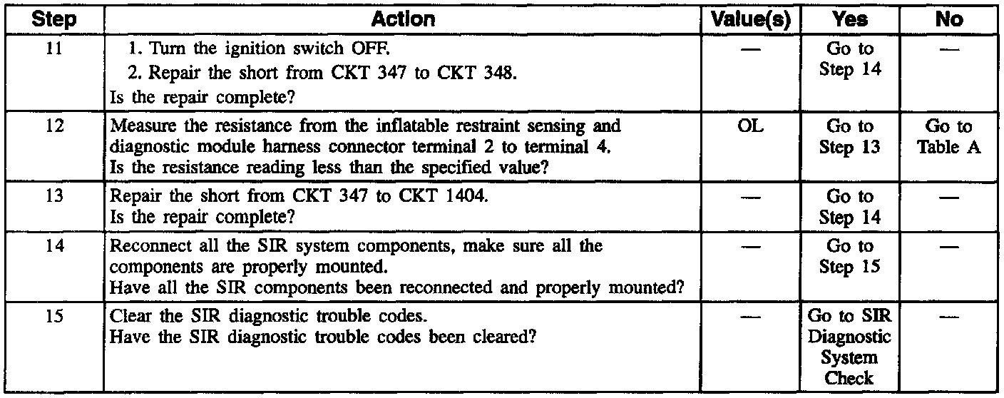 7. This test determines whether the malfunction is in the inflatable restraint steering wheel module coil or the inflatable restraint steering wheel module.