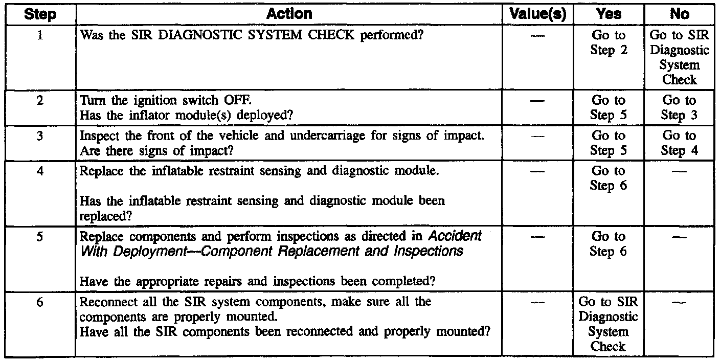 Failure to follow the correct procedure could cause air bag deployment, personal injury, or unnecessary SIR system repairs.