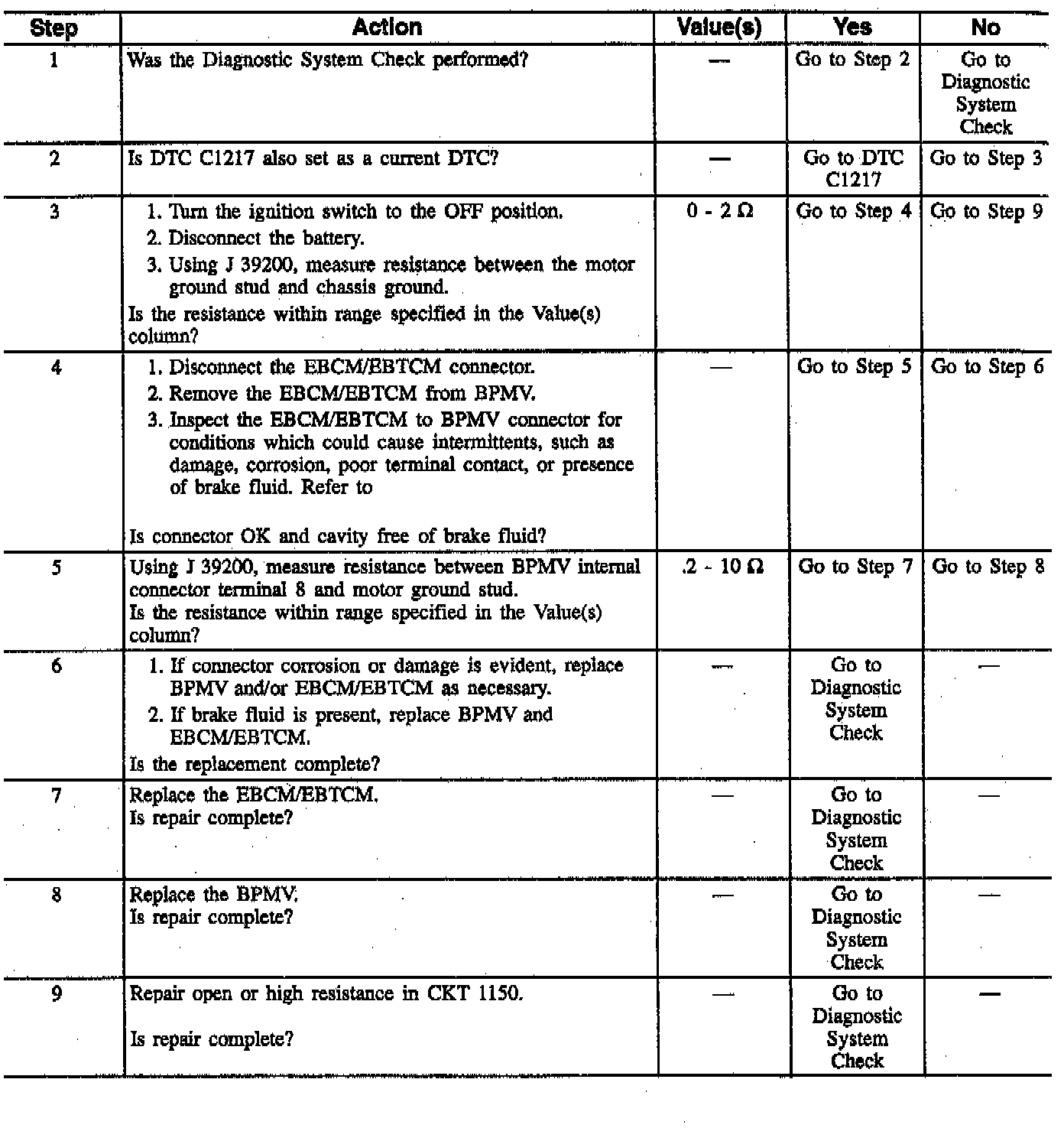 The numbers below refer to step numbers on the diagnostic table.