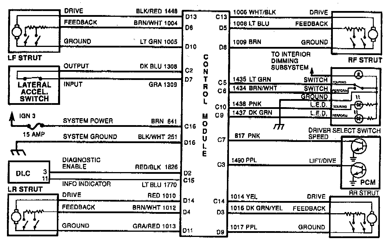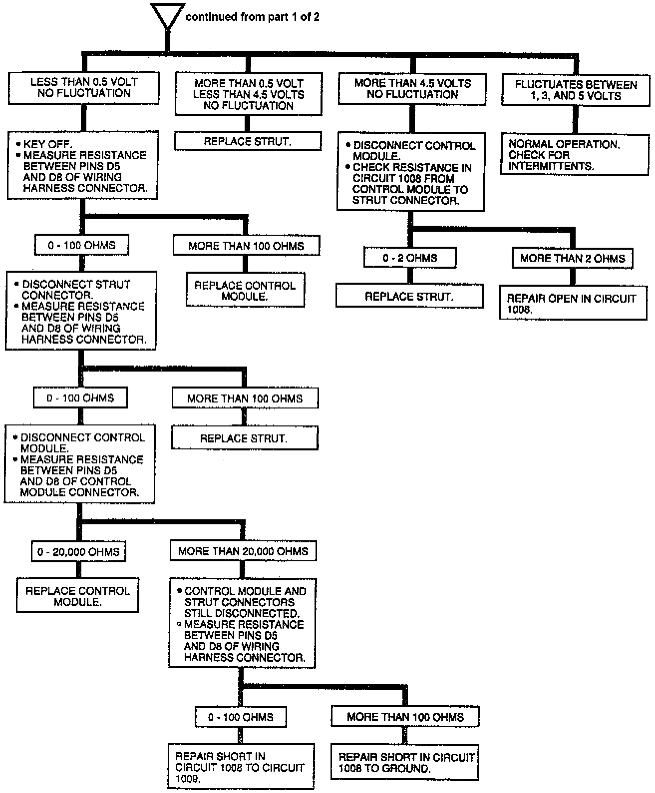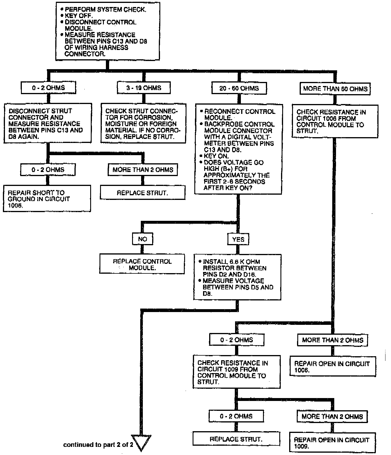 DESCRIPTION: An actuator position fault occurs when the actuator position feedback signal has not achieved and remained at the commanded actuator position within 6 seconds after the actuator has been activated. Actuator position faults result in deactivating the faulted actuators, storing error codes 23, 24, 25 or 26, and activating the driver select switch L.E.D.'s. The system will continue to operate all non-faulted actuators normally. Recovery of the faulted actuators will occur after a successful one second self-diagnostic test which is repeated every 3 minutes until all faults are cleared. A mismatch of the commanded feedback signal and the actual feedback signal which occurs after the 6 seconds will not be detected as an error. The actuators will not be repositioned until the Computer Command Ride (CCR) system commands a new actuator position as a result of new speed / lateral accelerator switch inputs or a 3 minute retest.