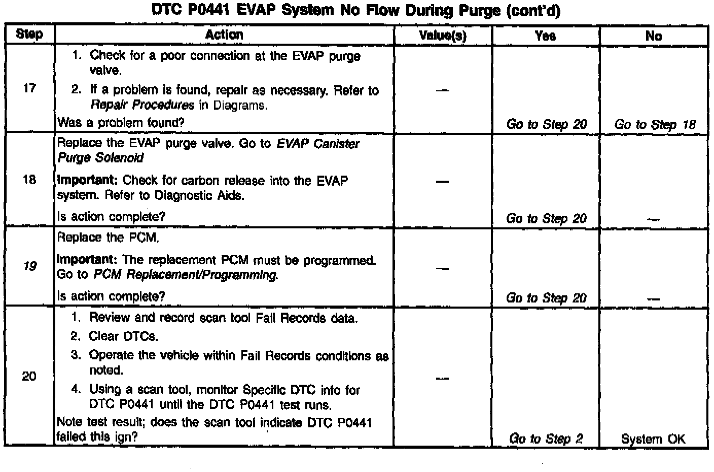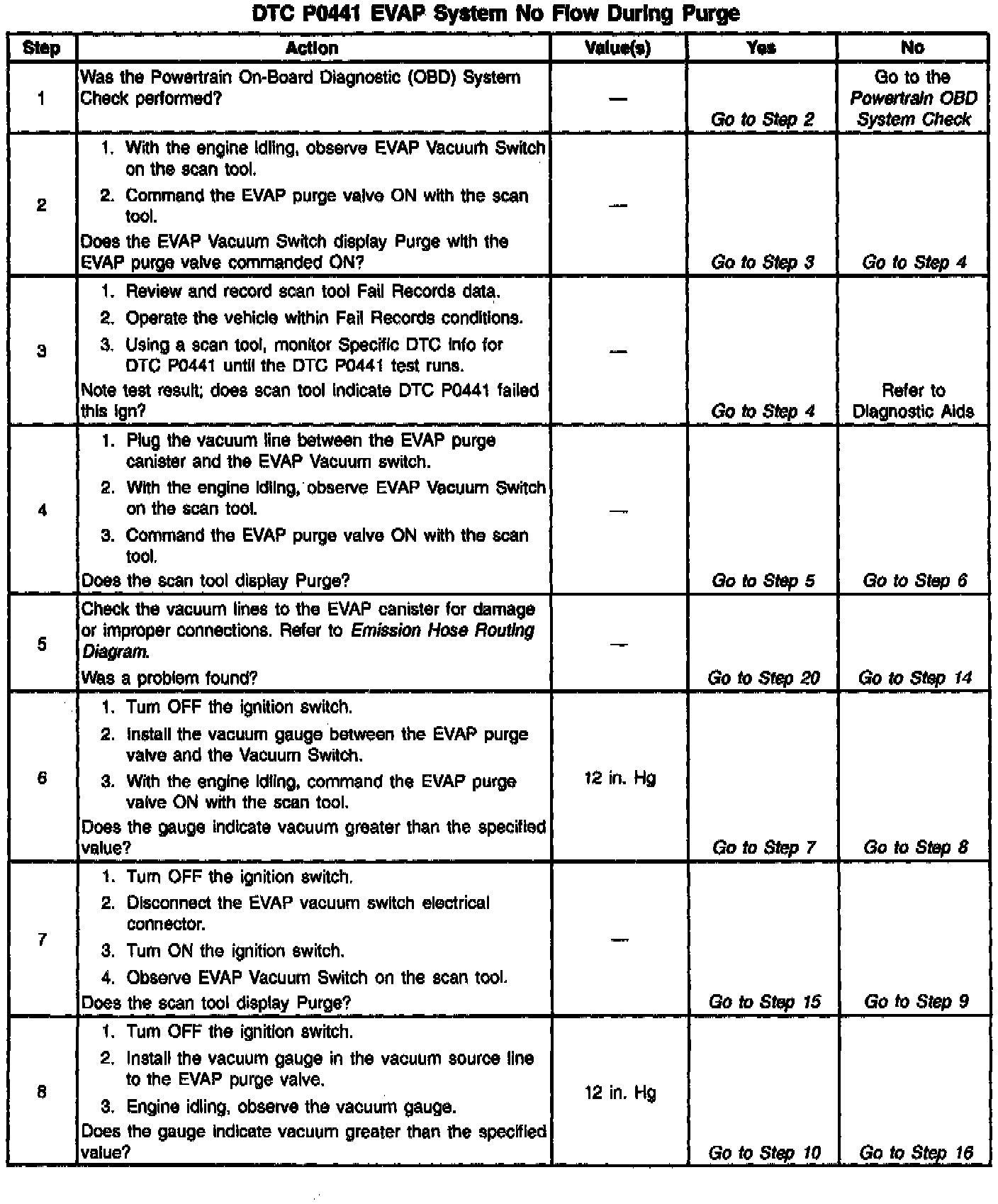 13. Proceed with the DTC P0441 diagnostic table.