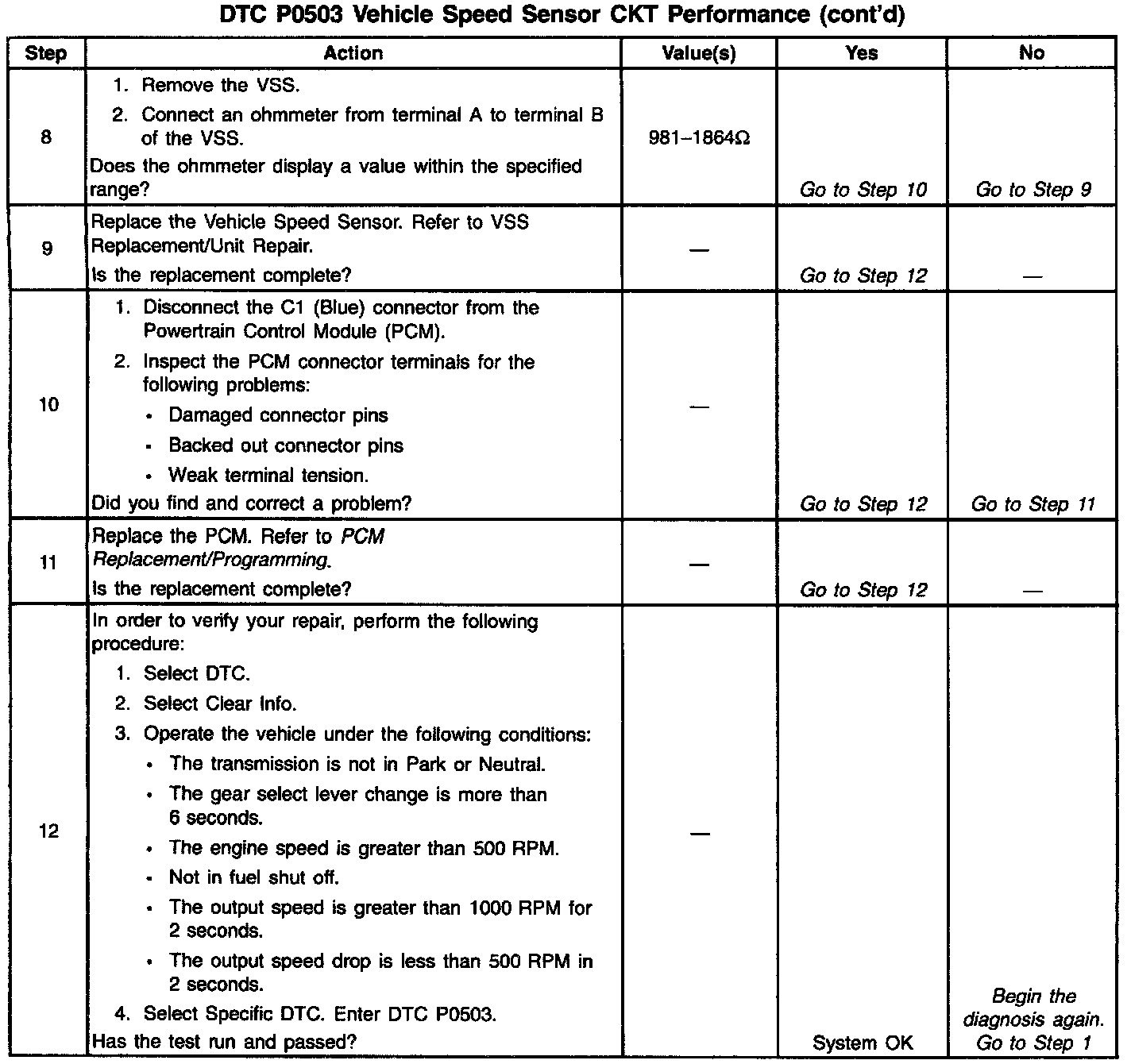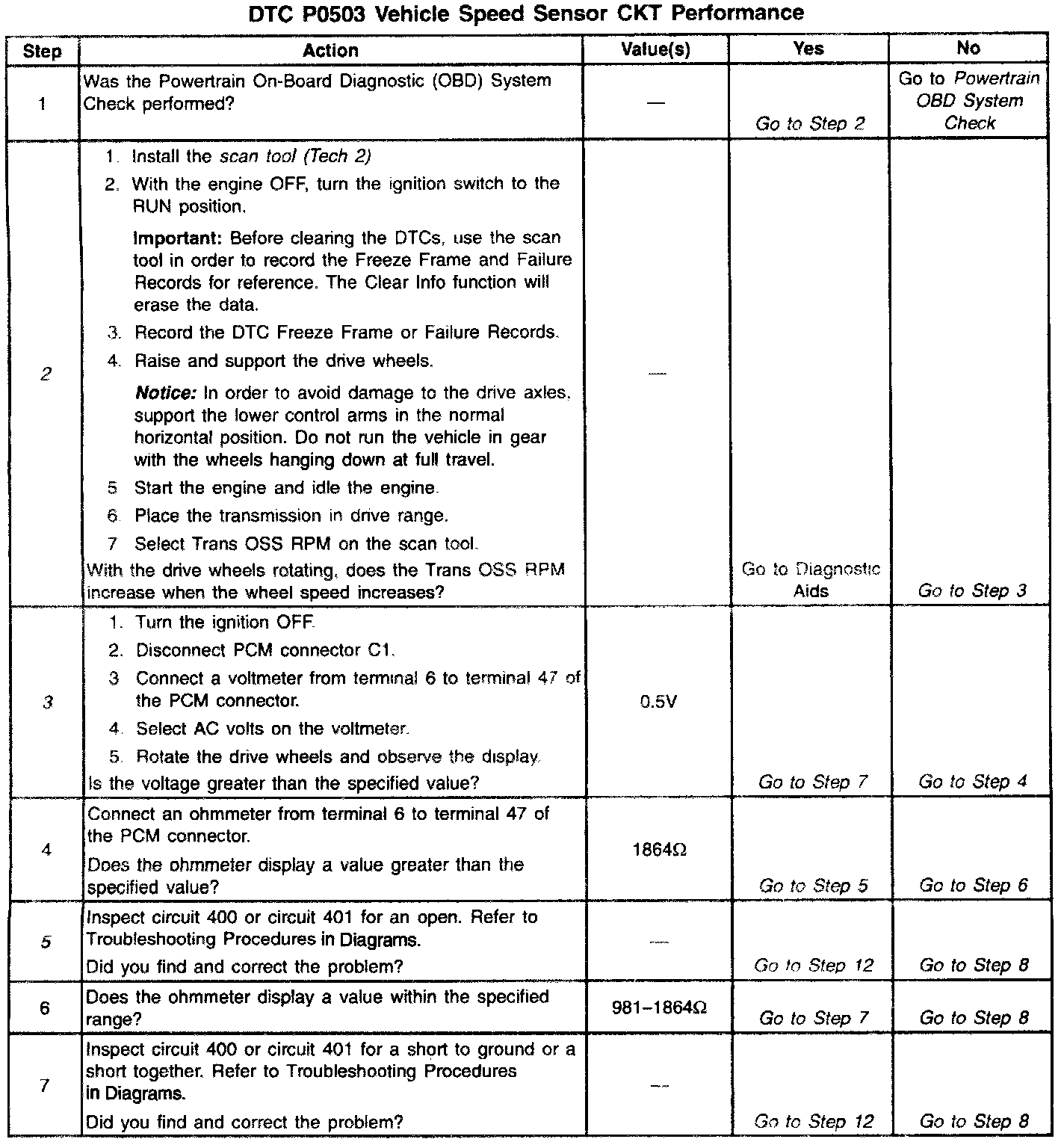 5. This Step performs a resistance check on circuits 400 and 401 from the PCM to the VSS Circuit 400 and Circuit 401 must be checked for an open.