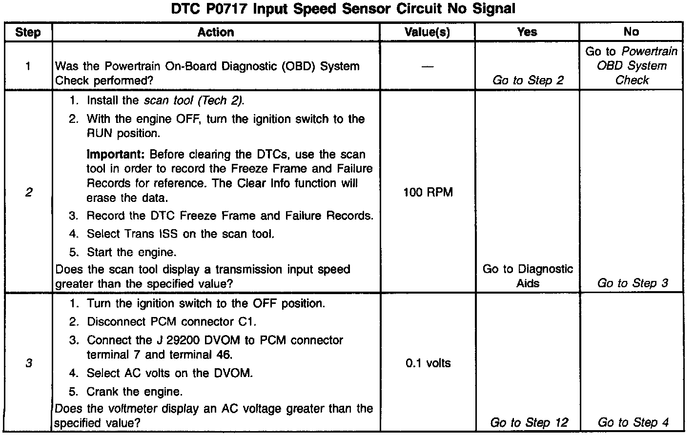 If the PCM detects a low input speed while the vehicle and engine speeds are high, then DTC P0717 sets. DTC P0717 is a Type B DTC.