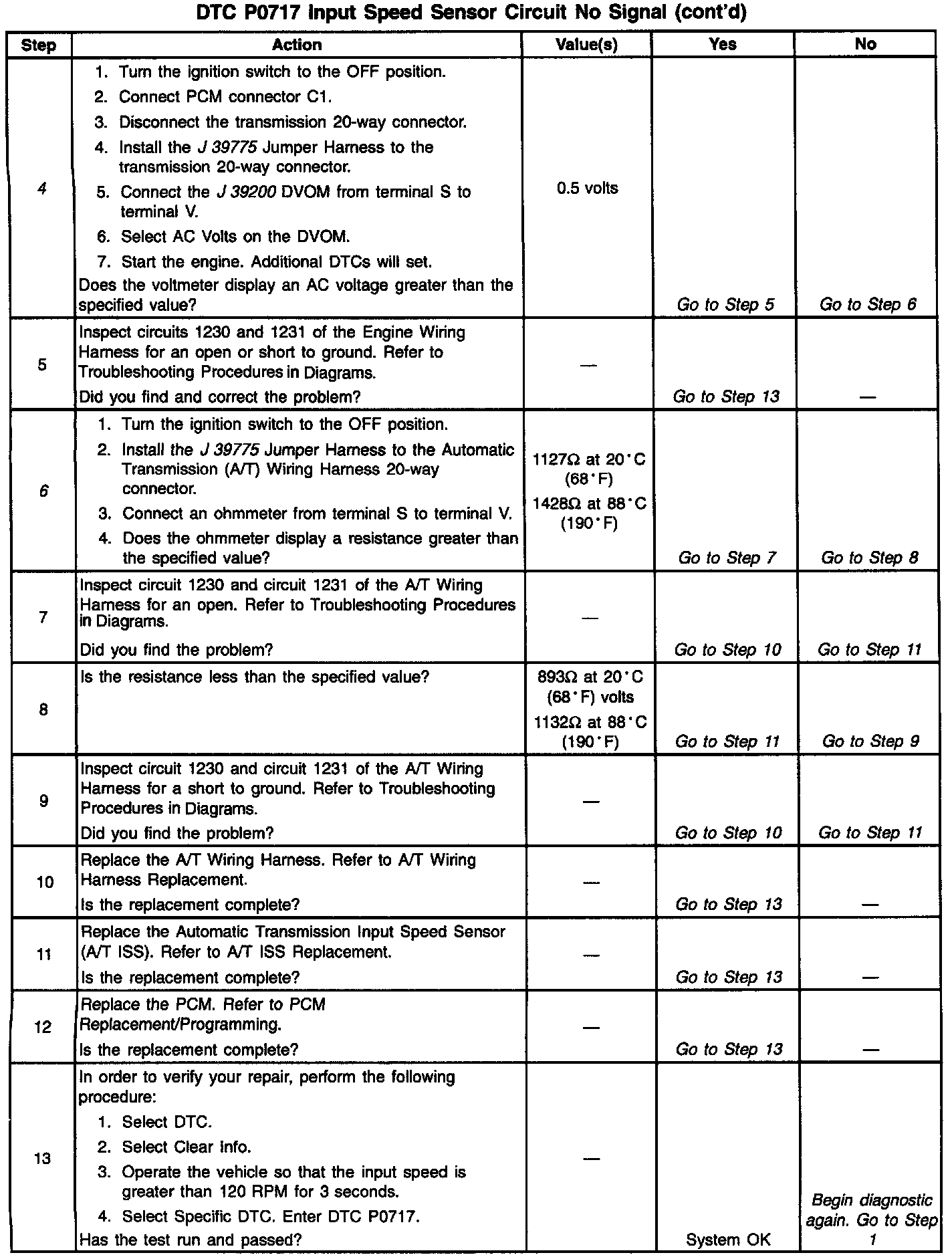 6. Step 6 performs a resistance check on the A/T ISS and the A/T wiring harness.