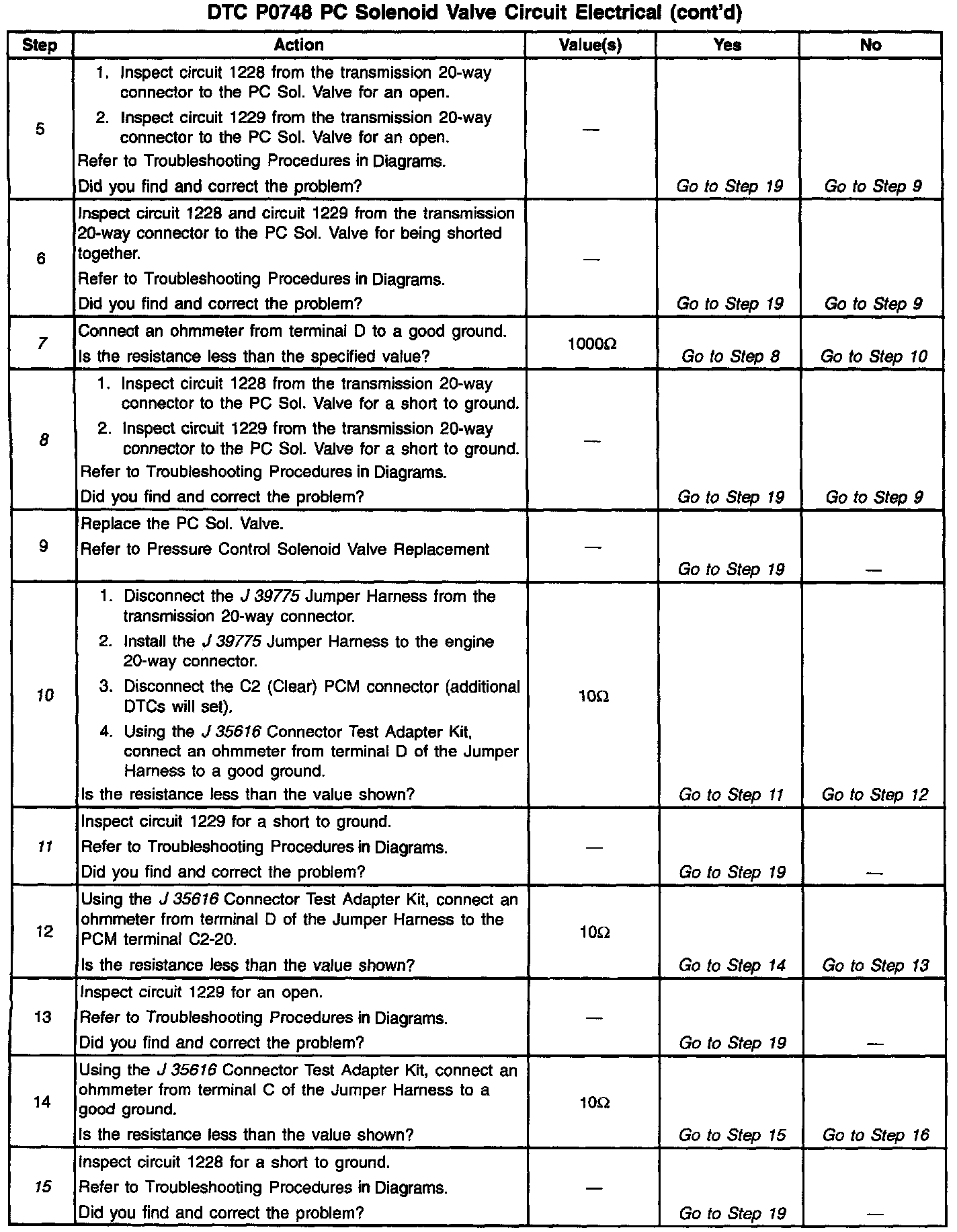 3. This Step verifies that the Automatic Transmission Wiring Harness Assembly and the PC Sol. Valve have correct resistance.