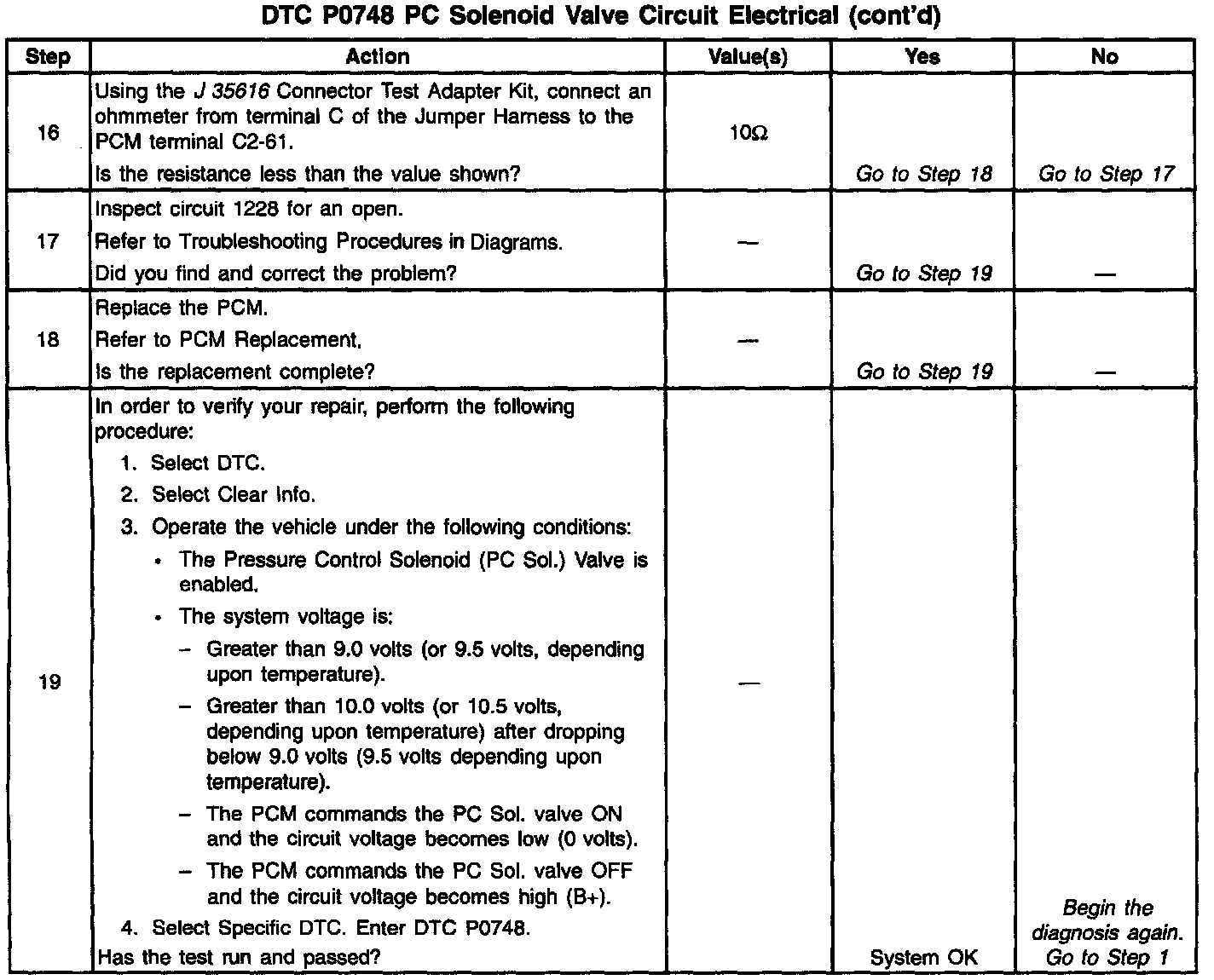 2. This Step verifies the ability of the PCM to command the PC Sol. Valve.