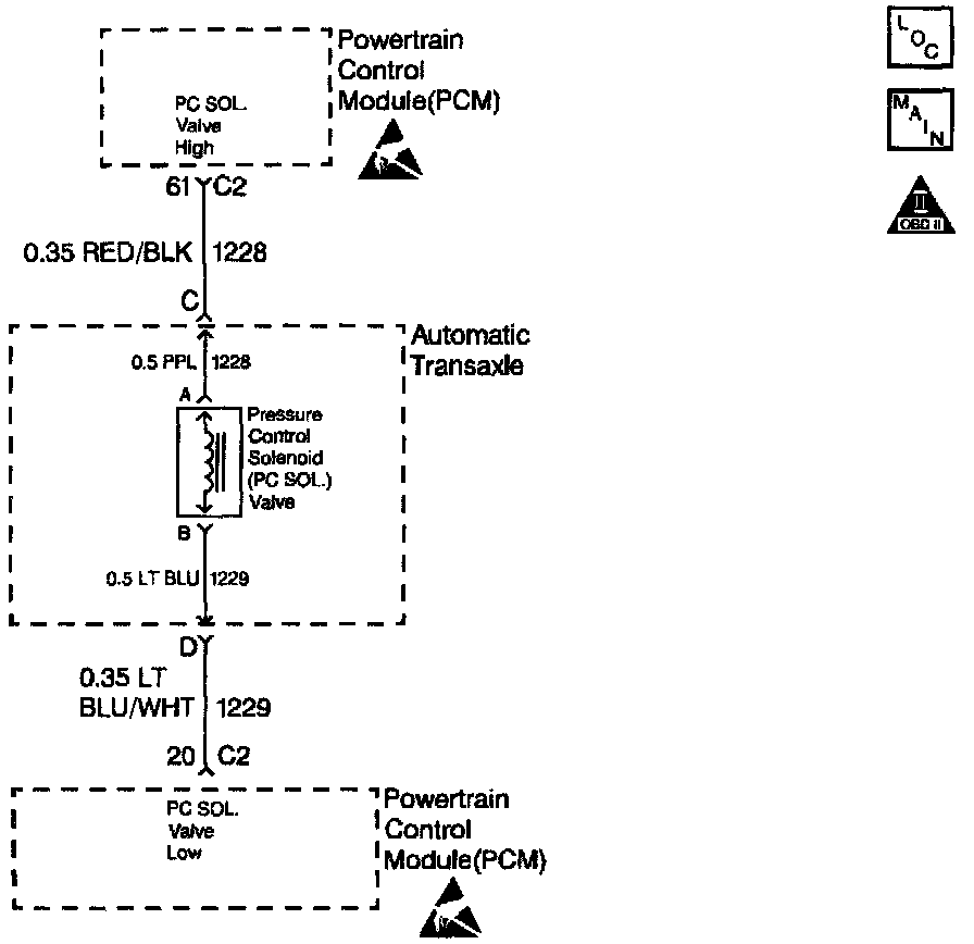 ^ Inspect the wiring for poor electrical connections at the PCM. Inspect the wiring for poor electrical connections at the transmission 20-way connector. Inspect the wiring for poor electrical connections at the PC Sol. Valve connector. Look for the following problems: