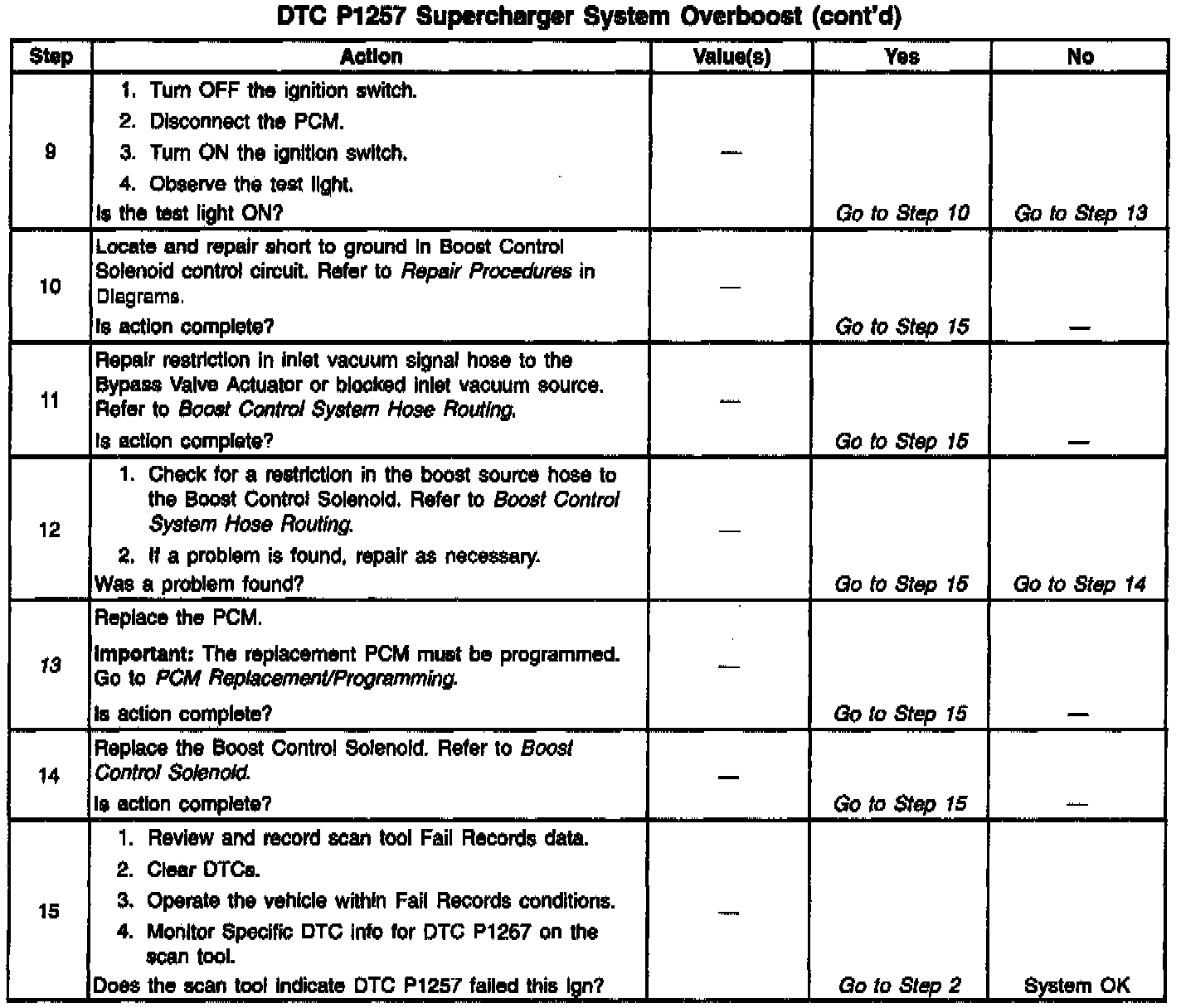 Number(s) below refer to Step number(s) in the diagnostic table.