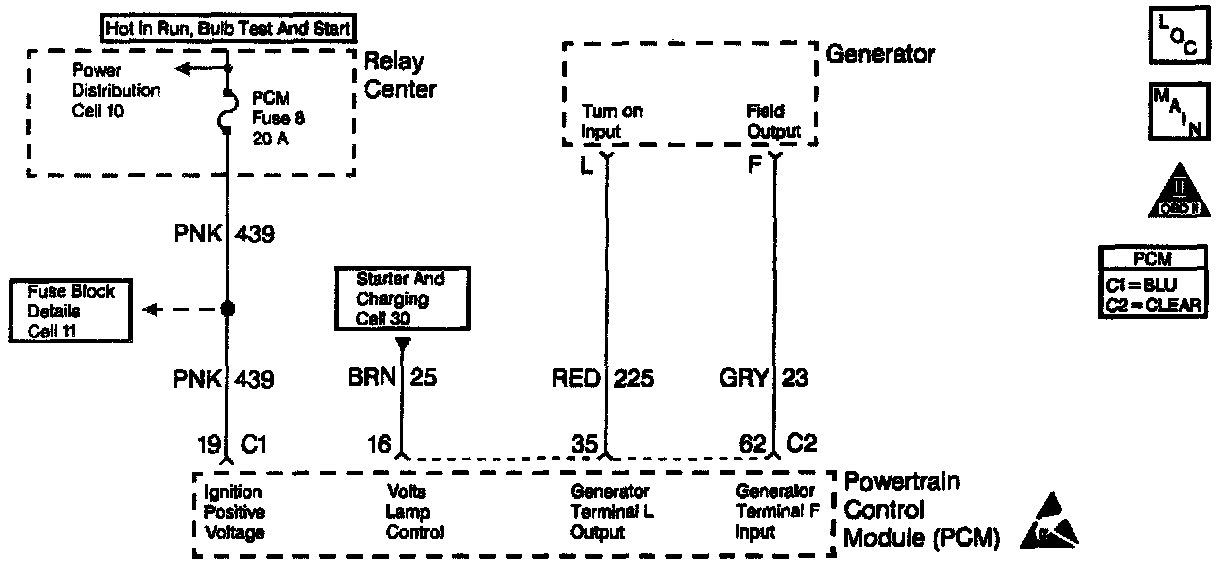 ^ If the harness appears to be OK, disconnect the PCM, turn the ignition ON and observe a digital multimeter connected between the generator lamp control circuit and ground at the PCM harness connector while moving connectors and wiring harnesses related to the generator lamp. A change in voltage will indicate the location of the fault.