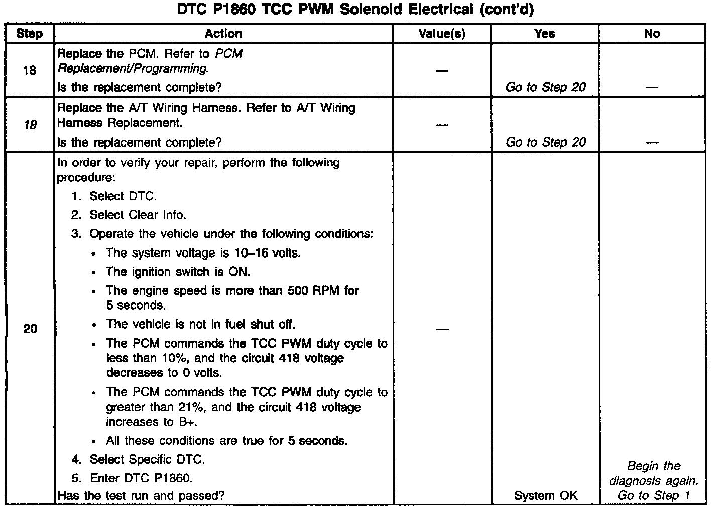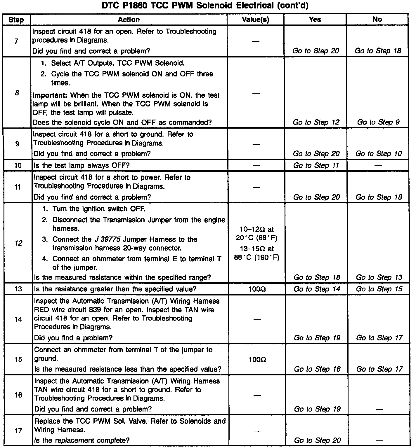 12. This Step verifies that the TCC PWM solenoid is not shorted across its windings or increased its resistance.