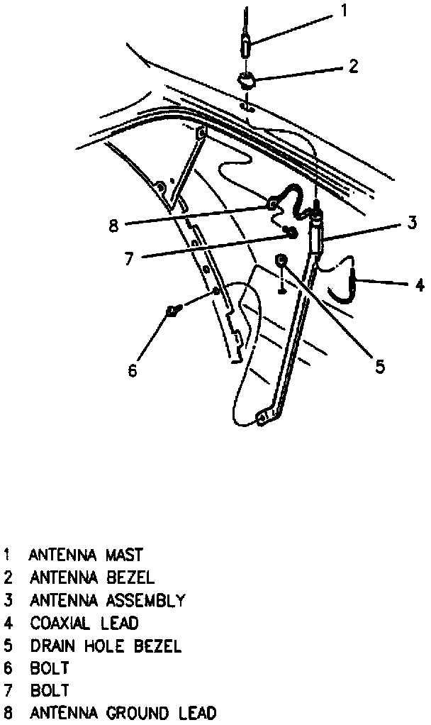 3. Antenna bracket bolt.