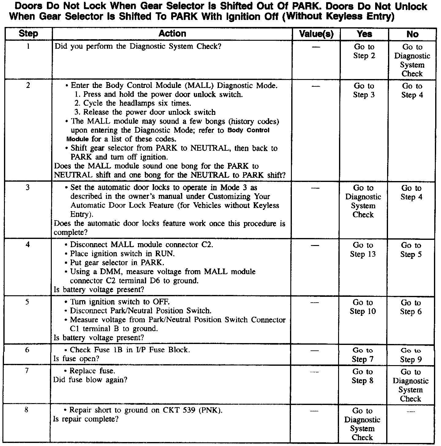 Doors Do Not Lock When Gear Selector Is Shifted Out Of PARK (Part 2 Of 2):