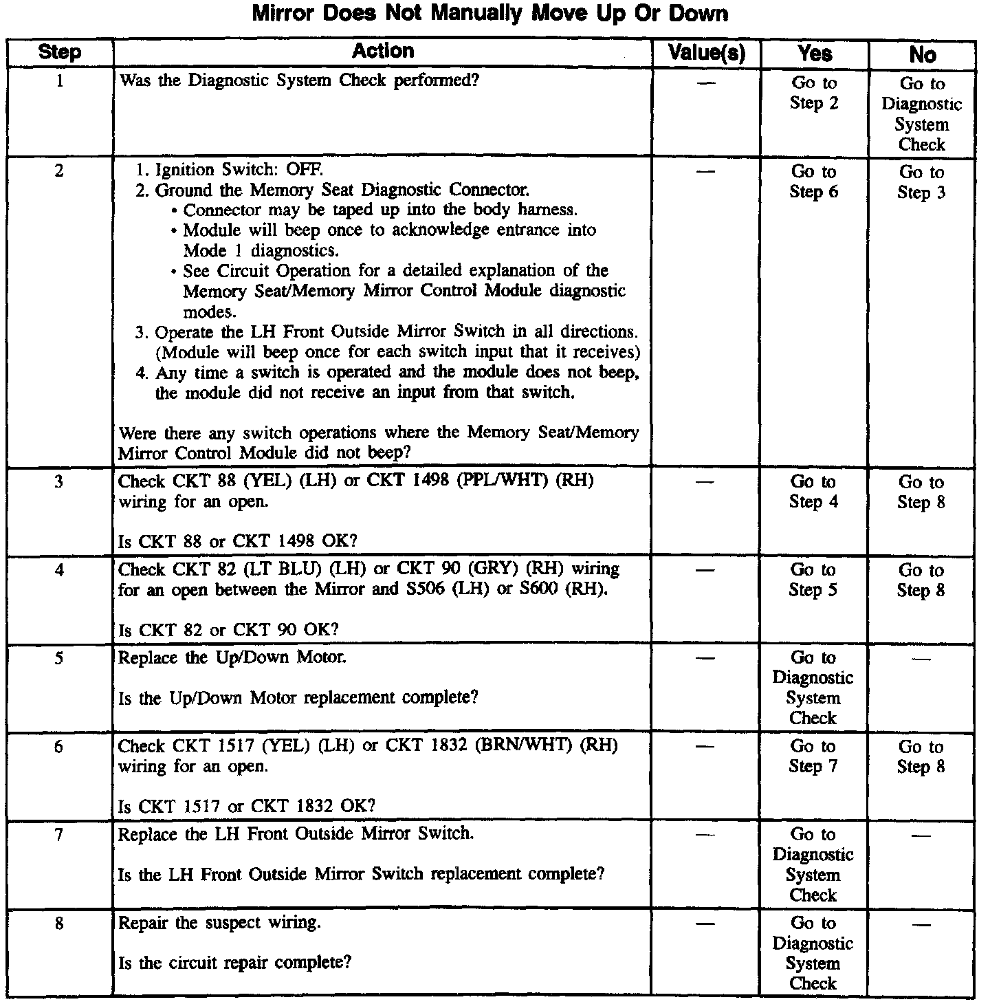 Diagnosis By Symptom - Memory Seats