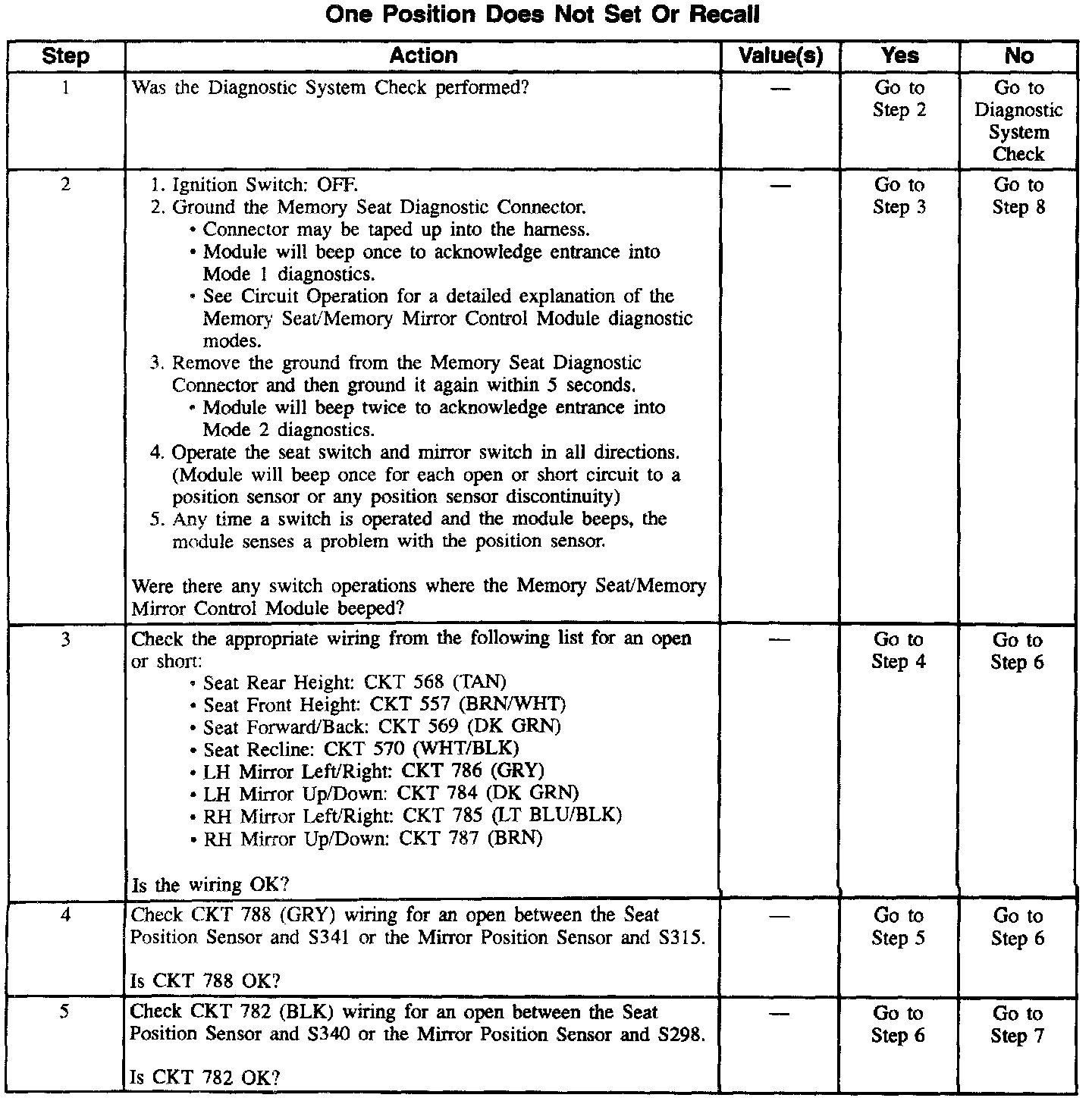 Diagnosis By Symptom - Memory Seats