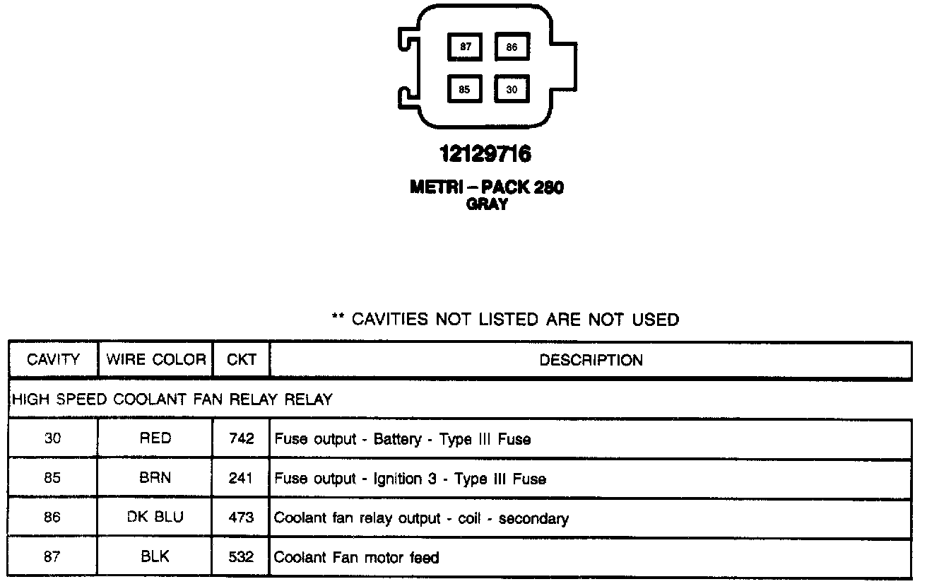 High Speed Coolant Fan Relay: