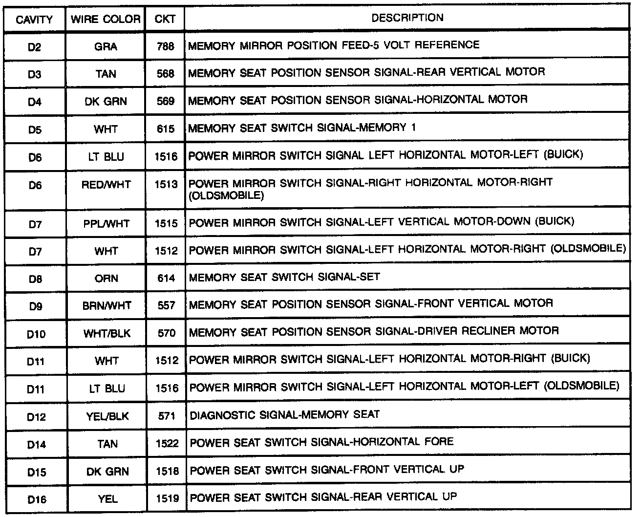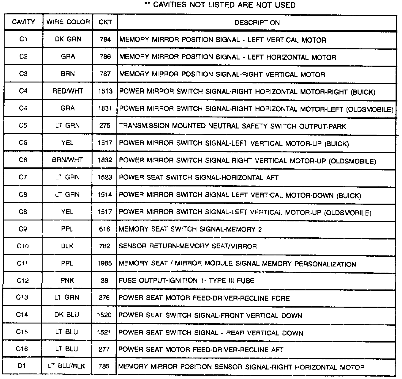 Memory Seat/Memory Control Module CONN: C2 (Part 1 Of 2):