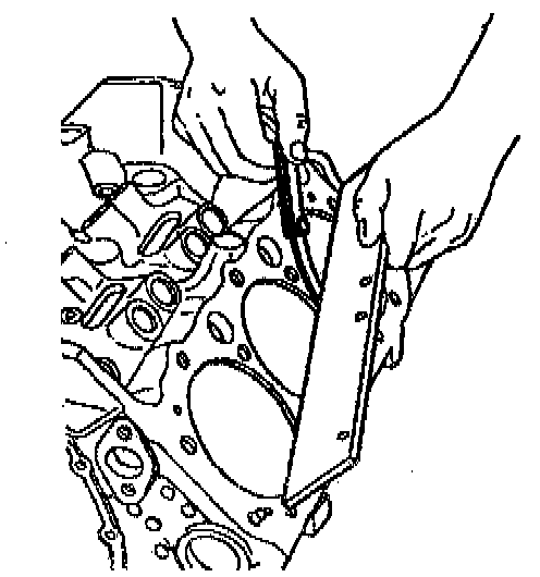 11. Inspect the oil pan rail for nicks. Inspect the front cover attaching area for nicks. Use a flat mill file in order to remove any nicks.