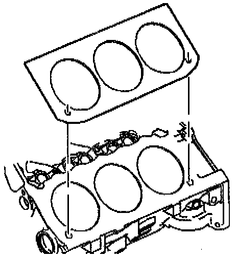 2. Install the head gasket with the arrow pointing to the front of the engine.