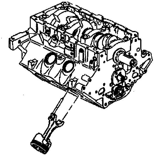 CAUTION: Guide the lower connecting rod end carefully to avoid damaging the crankshaft journal.