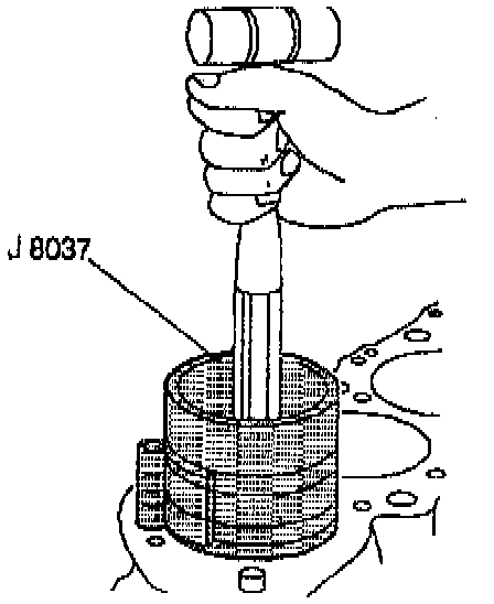 NOTE: The Balance Shaft Bushing Installer ensures that the rear bushing is installed to the correct depth. The bushing is properly installed when the Balance Shaft Bushing Installer fully contacts the balance shaft bore or the cylinder block/transaxle mounting flange.