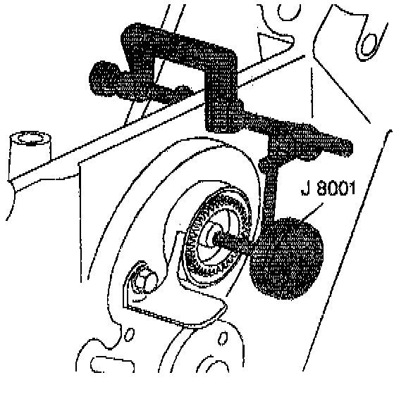 n. Turn the camshaft so that the timing mark on the camshaft sprocket is straight down.