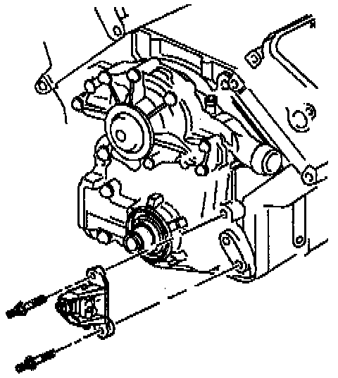 b. Install the pulley bracket bolt. Tighten the bolt to 50 Nm (37 ft. lbs.).