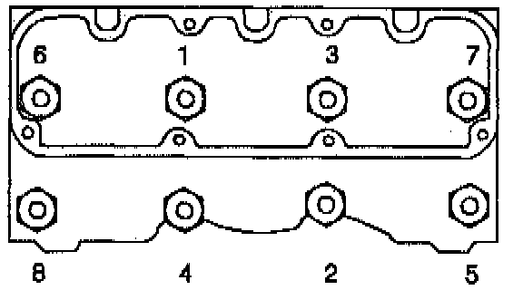 d. Install the new cylinder head bolts. Tighten the bolts to 50 Nm (37 ft. lbs.) in sequence.
