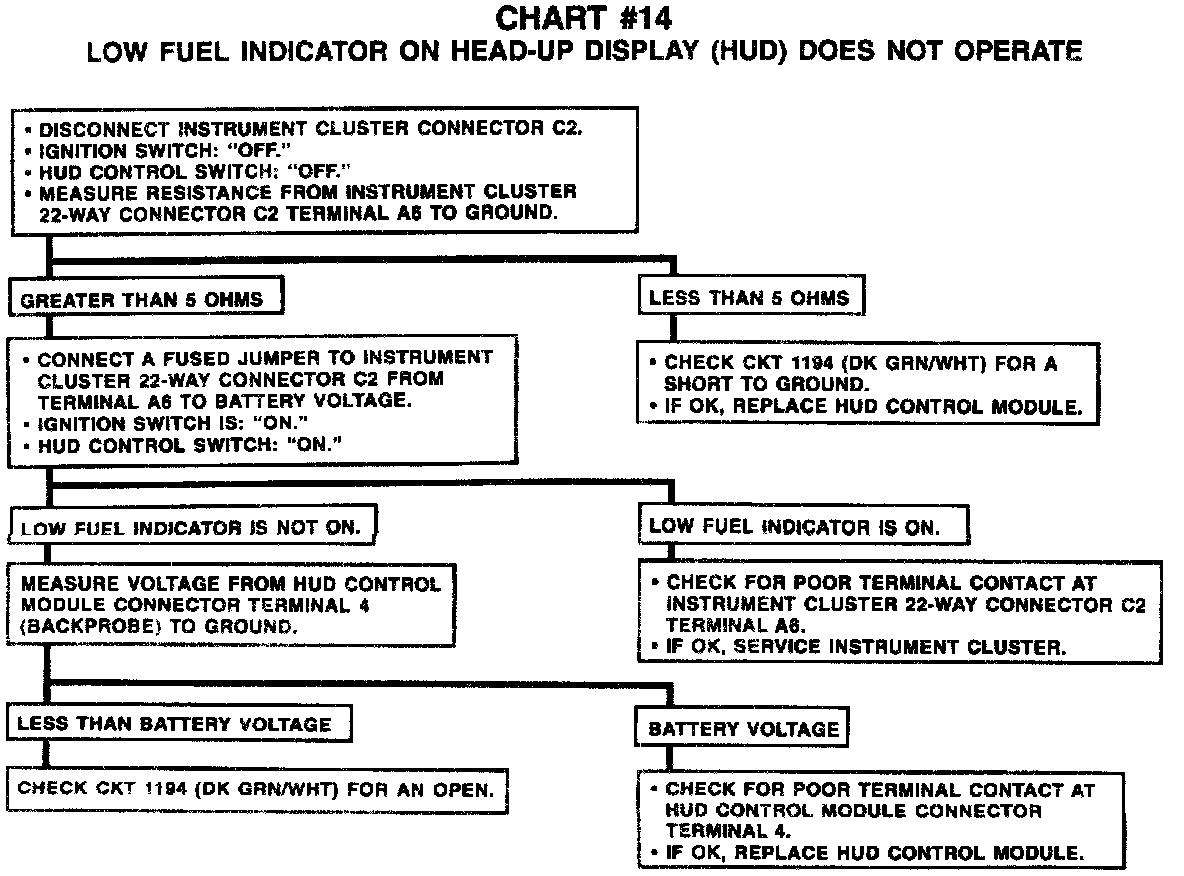 Chart #14 Low Fuel Indicator Head-Up Display (HUD) Does Not Operate: