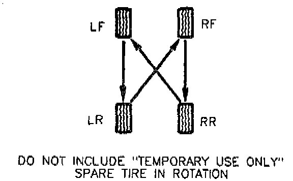 After rotation, be sure to check wheel nuts for specified torque and adjust inflation pressure.