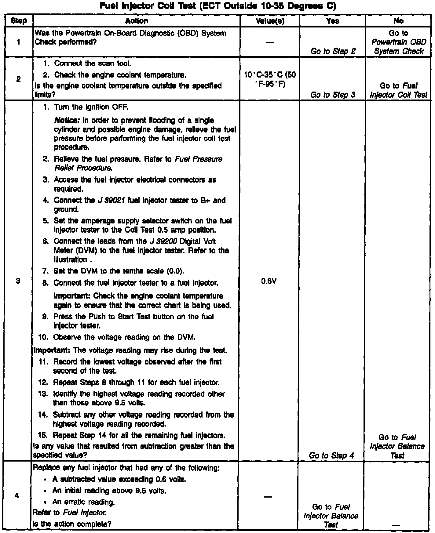 Fuel Injector Coil Test - ECT Temp Outside 10-35 Deg C