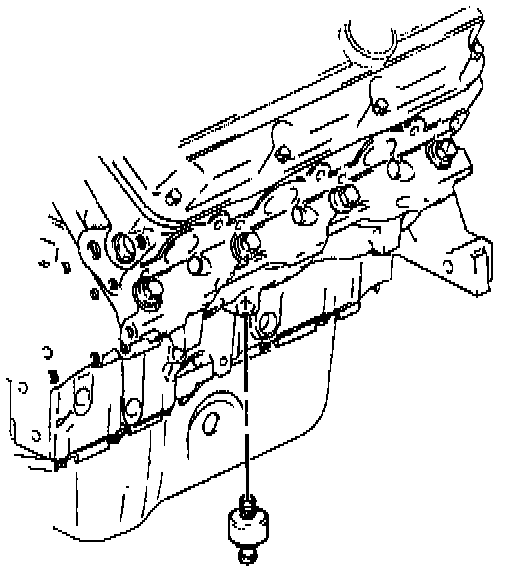 2. Install the knock sensor heat shield mounting bolt located under the freeze plug (or block heater if equipped).