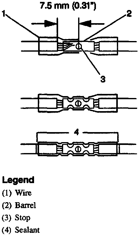 ^ Place the splice sleeve in the nest so that the crimp falls midway between the end of the barrel and the stop.