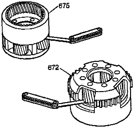 1. Use feeler gages in order to check for excessive pinion gear end play in the input carrier assembly (672) and in the reaction carrier assembly (675).