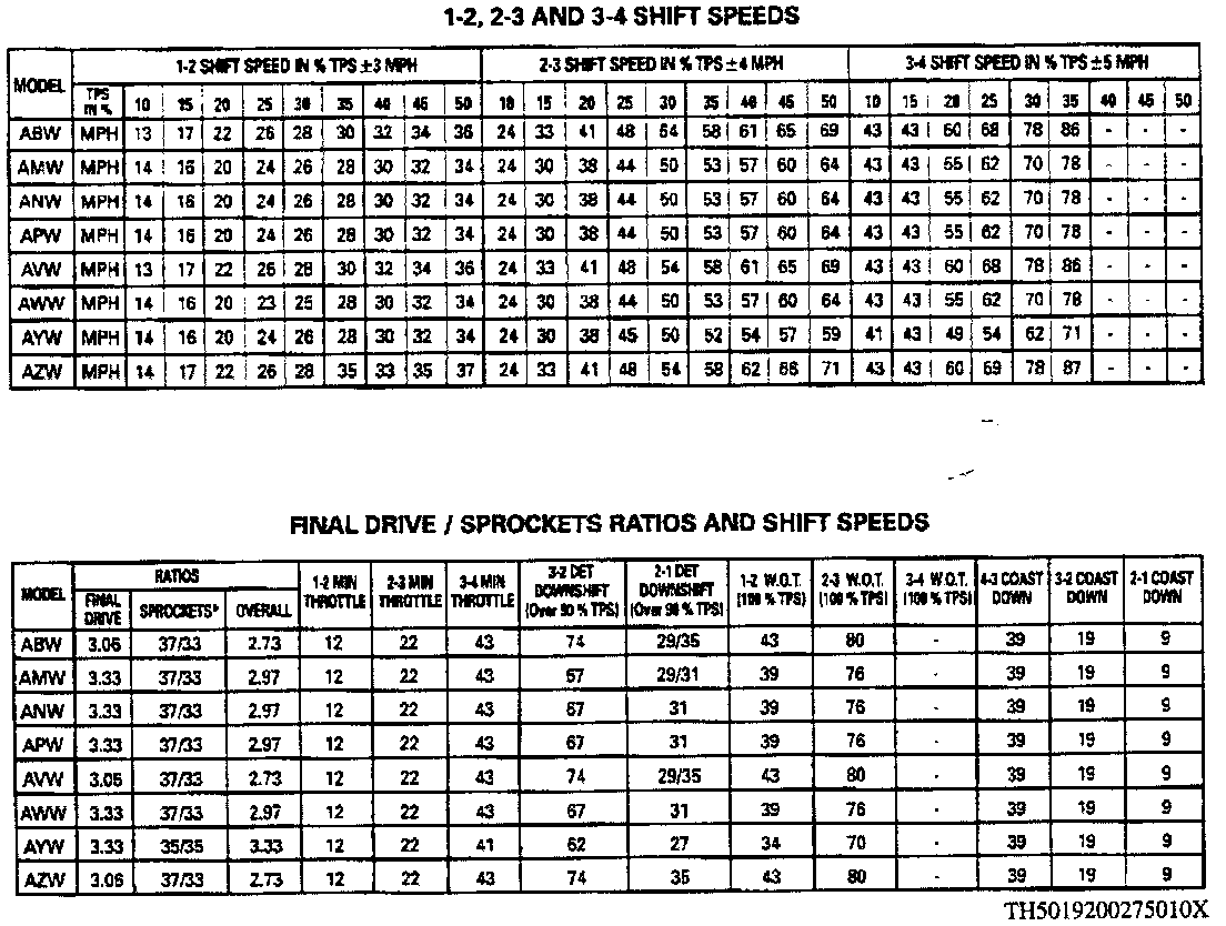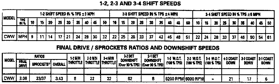 Shift Speed Chart: