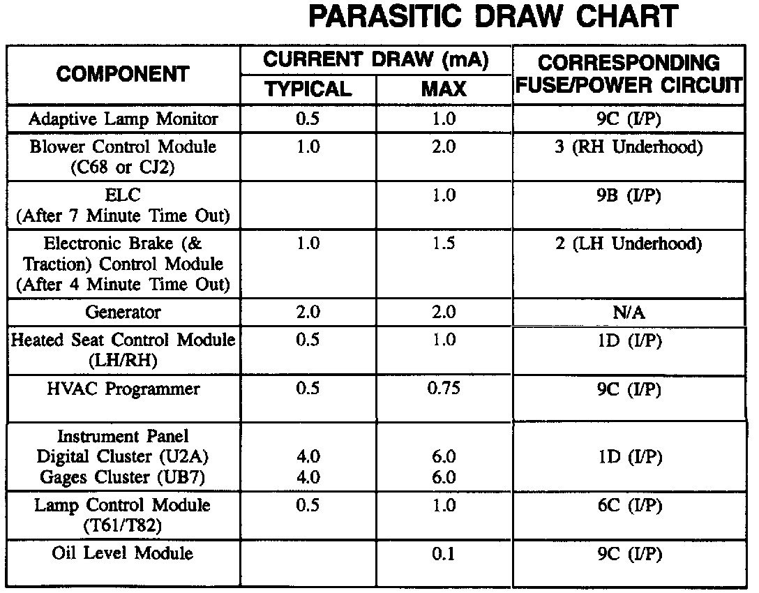 Parasitic Draw Test Chart
